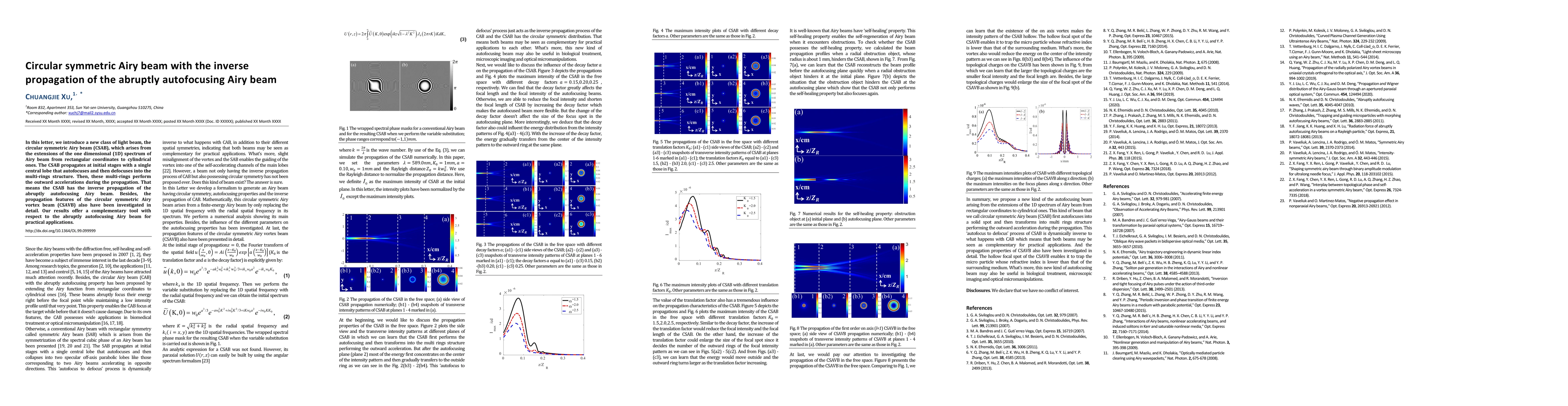This paper introduces a circular symmetric Airy beam (CSAB) that propagates initially with a central lobe, autofocuses, then defocuses into a multi-rings structure, and exhibits inverse propagation compared to the abruptly autofocusing Airy beam. The study also investigates the propagation features of the circular symmetric Airy vortex beam (CSAVB), providing new tools for practical applications.