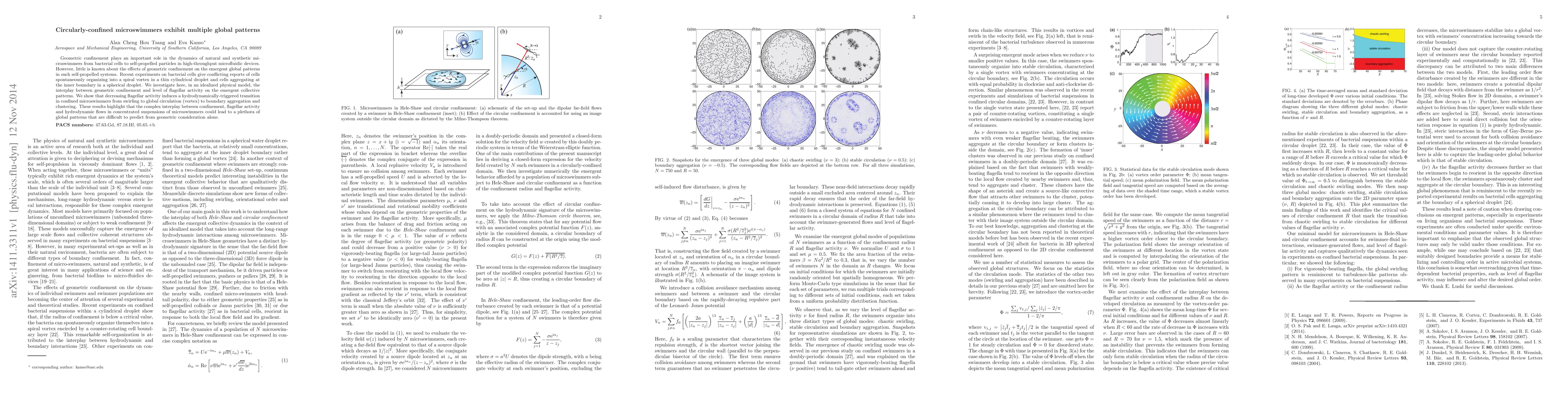 This study explores how geometric confinement influences the collective patterns of microswimmers, revealing that varying flagellar activity can trigger transitions from swirling to vortex formation and boundary aggregation. The findings underscore the complexity of predicting microswimmer behavior due to the interplay between confinement, activity levels, and hydrodynamic interactions.