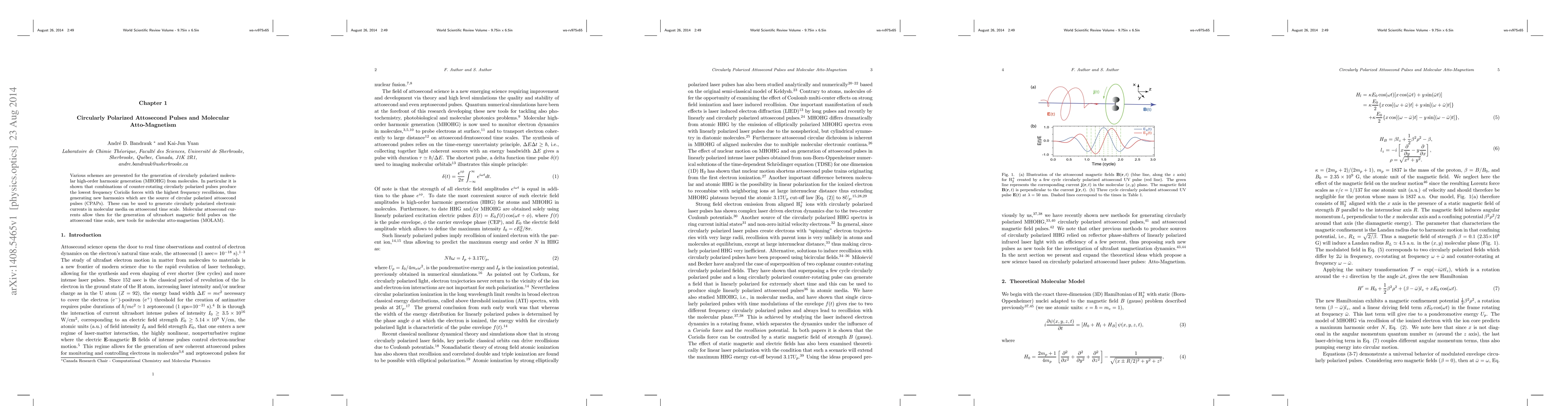 This research presents methods for generating circularly polarized attosecond pulses via molecular high-order harmonic generation using counter-rotating pulses, leading to the production of circularly polarized electronic currents and ultrashort magnetic field pulses, thus advancing molecular atto-magnetism.