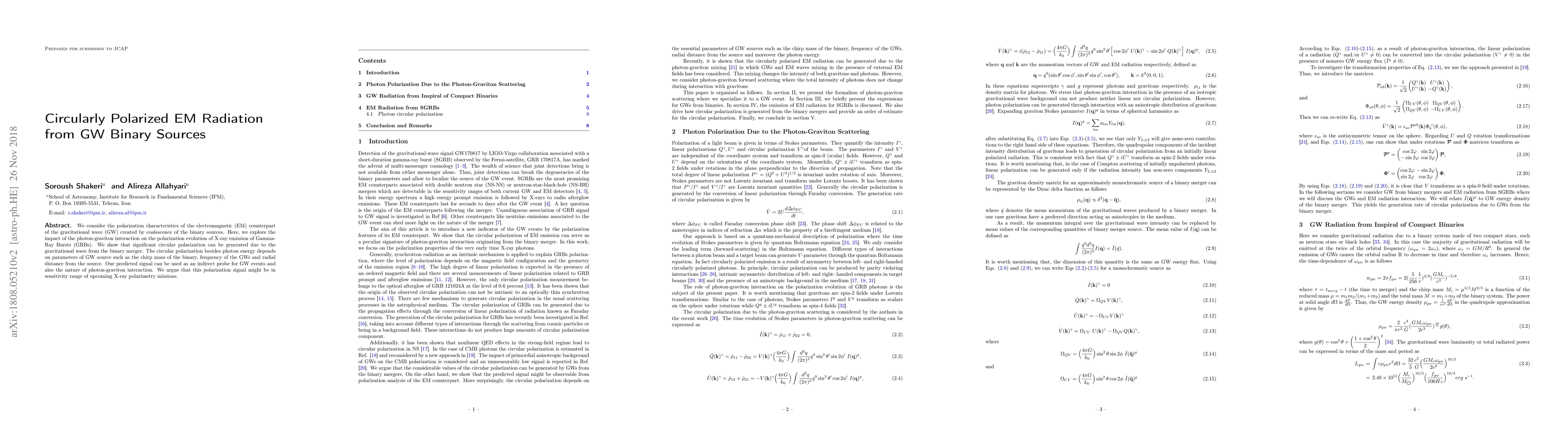 This research explores how gravitational waves from binary source mergers can induce significant circular polarization in X-ray emissions of Gamma-Ray Bursts (GRBs). The degree of polarization is influenced by factors like the binary's chirp mass, GW frequency, and distance from the source. The findings suggest that this polarization signal could be detectable by future X-ray polarimetry missions, offering a new method to study both GW events and the interaction between photons and gravitons.