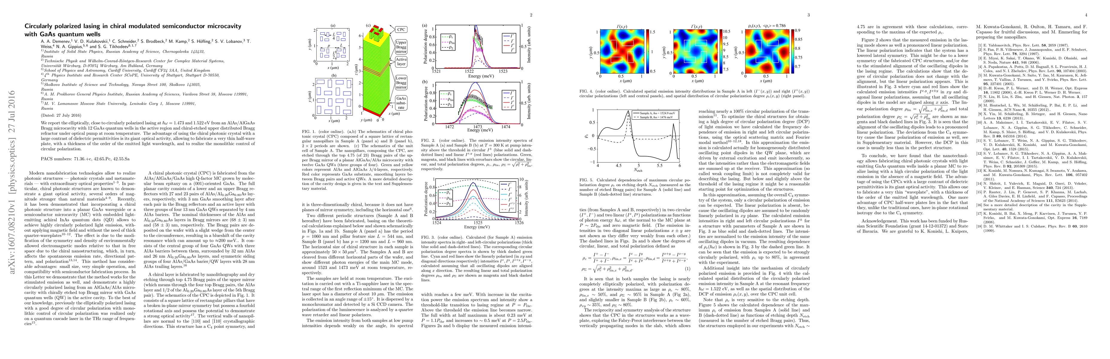 Researchers achieved elliptical, circularly polarized lasing at room temperature using a unique semiconductor microcavity design with GaAs quantum wells and a chiral-etched structure.