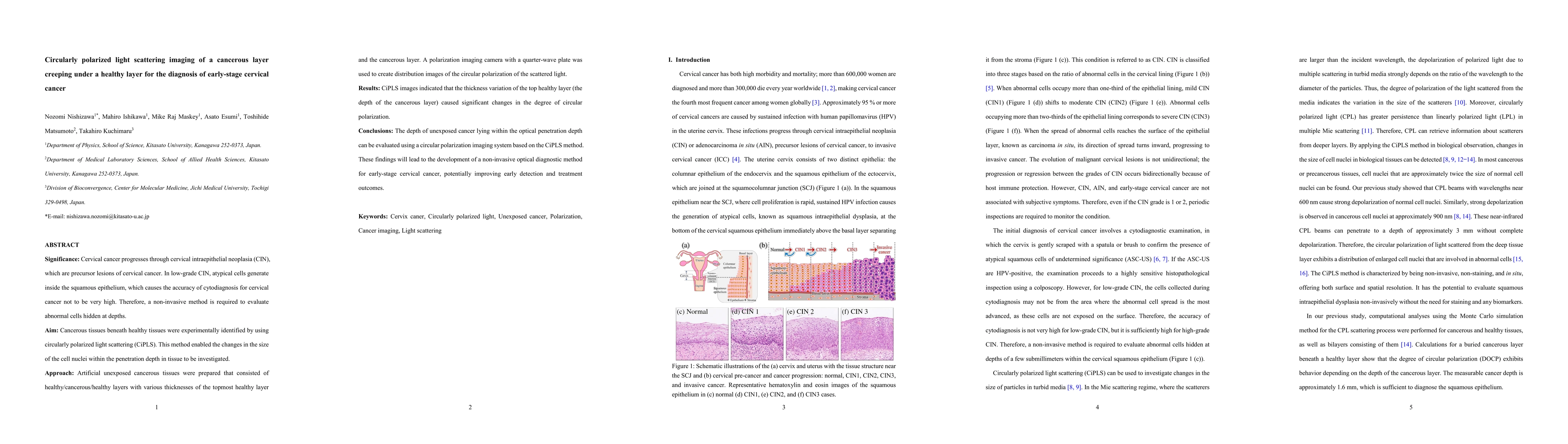 This work differs from existing research by focusing on non-invasive detection of early-stage cervical cancer using CiPLS and polarization imaging, providing a promising method for future clinical applications.