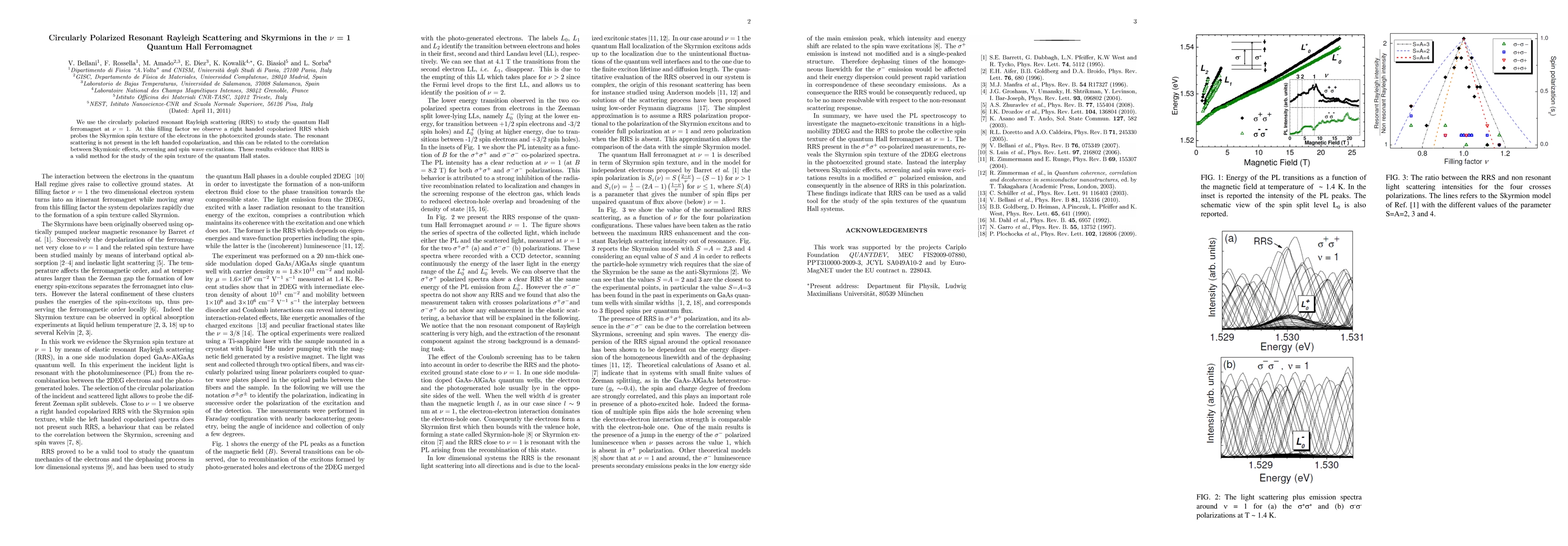 We use the circularly polarized resonant Rayleigh scattering (RRS) to study the quantum Hall ferromagnet at $\nu$ = 1. At this filling factor we observe a right handed copolarized RRS which probes the Skyrmion spin texture of the electrons in the photoexcited grounds state. The resonant scattering is not present in the left handed copolarization, and this can be related to the correlation between Skymionic effects, screening and spin wave excitations. These results evidence that RRS is a valid method for the study of the spin texture of the quantum Hall states.