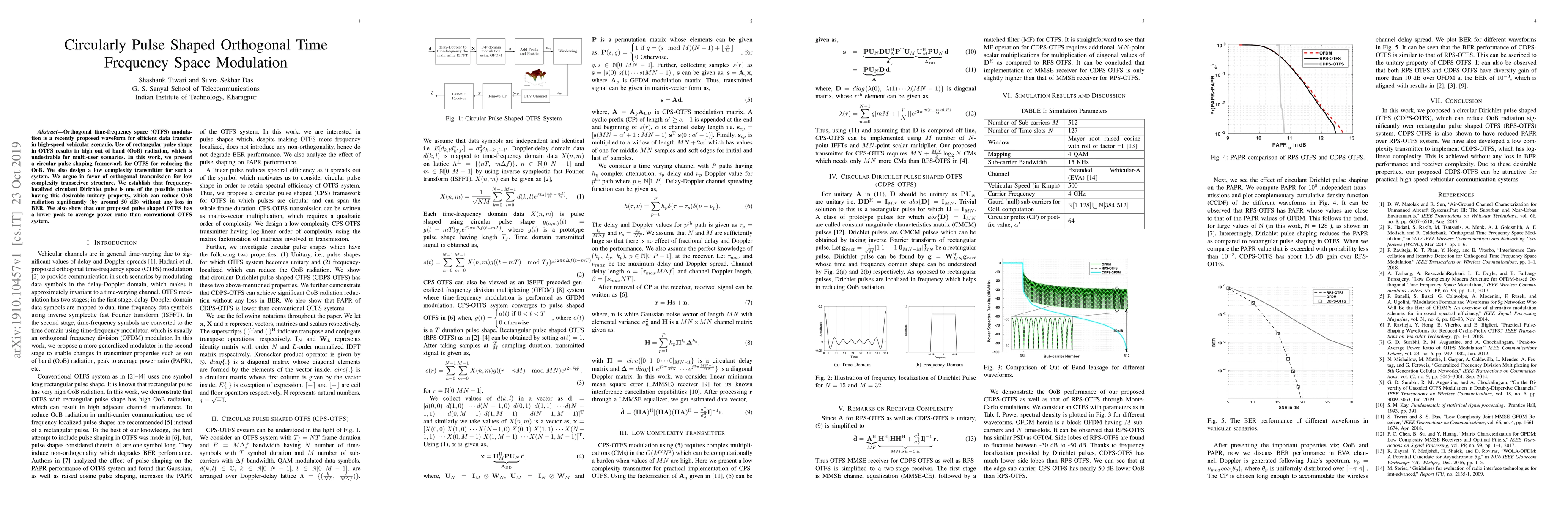 This paper proposes a circularly pulse shaped orthogonal time-frequency space (OTFS) modulation to reduce out-of-band radiation, enhancing efficiency in high-speed vehicular communication. The study introduces a low complexity transmitter and demonstrates that the frequency-localized circulant Dirichlet pulse can significantly reduce out-of-band radiation by 50 dB without affecting bit error rate, while also lowering the peak-to-average power ratio.