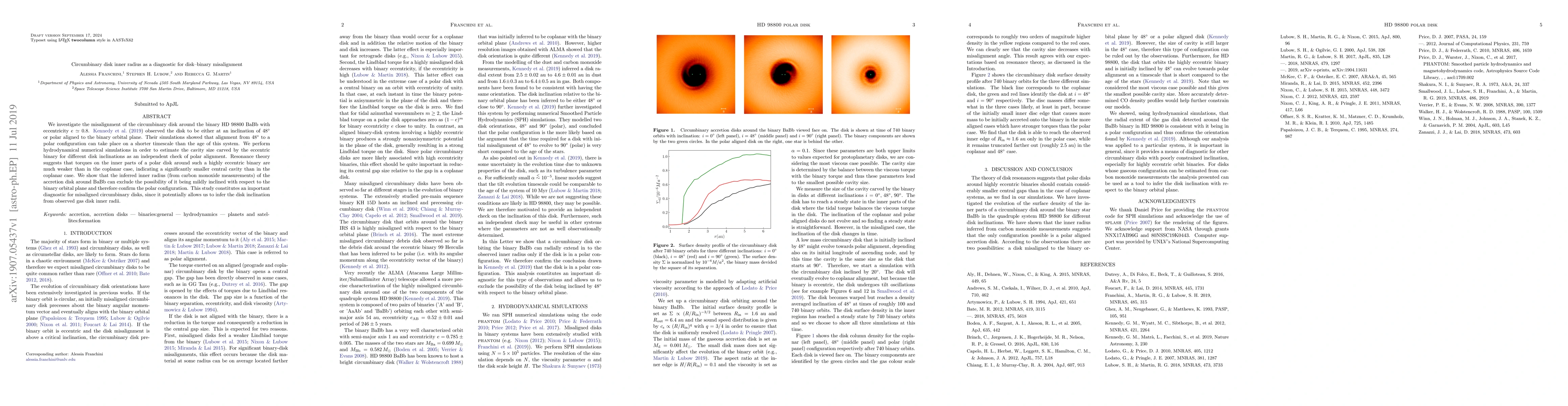 This study investigates the misalignment of the circumbinary disk around the binary HD 98800 BaBb, confirming its polar alignment through hydrodynamical simulations and carbon monoxide measurements. The research demonstrates that the inner radius of the disk can serve as a diagnostic tool for determining the disk's inclination relative to the binary orbital plane.