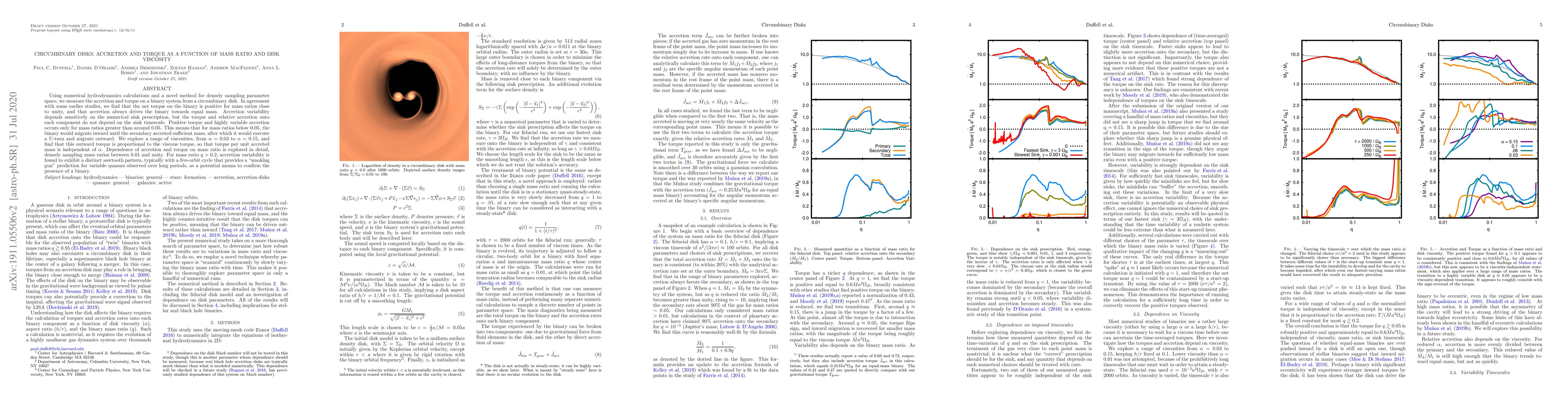 This study uses numerical hydrodynamics to analyze accretion and torque in circumbinary disks, finding that positive torque and variable accretion occur mainly for mass ratios above $0.05$. The research reveals a proportional relationship between outward torque and viscosity, with a distinct sawtooth accretion pattern for mass ratios above $0.6$, offering a potential observational signature for binary systems.