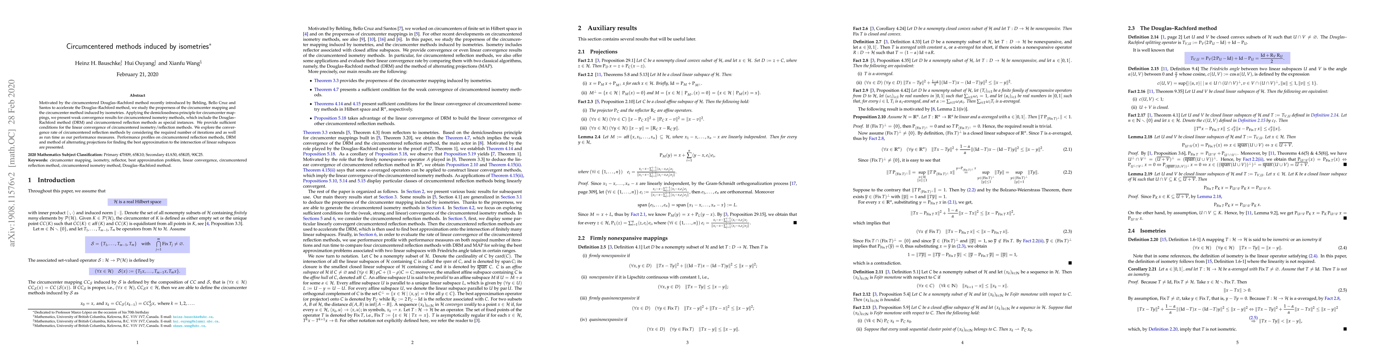 This research explores the circumcentered methods for accelerating optimization algorithms, providing convergence results and conditions for linear convergence of isometry and reflection methods.