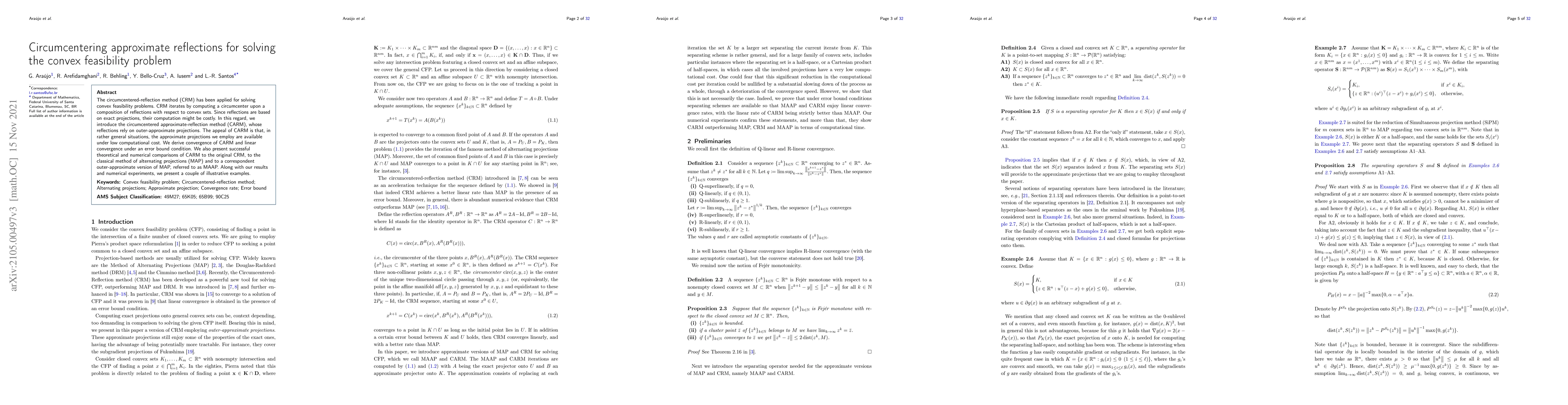 This paper introduces the circumcentered approximate-reflection method (CARM) for solving convex feasibility problems, which uses outer-approximate projections instead of exact ones to reduce computational cost. The authors prove convergence and linear convergence under an error bound condition, and compare CARM theoretically and numerically to the original circumcentered-reflection method, the method of alternating projections, and its outer-approximate version.