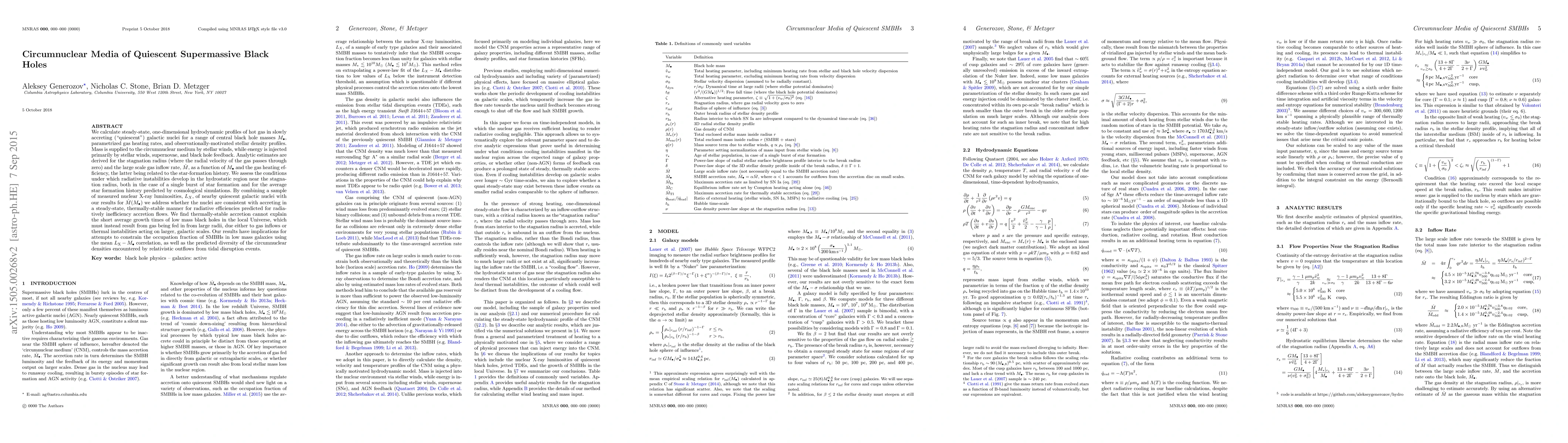 We calculate steady-state, one-dimensional hydrodynamic profiles of hot gas in slowly accreting ("quiescent") galactic nuclei for a range of central black hole masses $M_{\bullet}$, parametrized gas heating rates, and observationally-motivated stellar density profiles. Mass is supplied to the circumnuclear medium by stellar winds, while energy is injected primarily by stellar winds, supernovae, and black hole feedback. Analytic estimates are derived for the stagnation radius (where the radial velocity of the gas passes through zero) and the large scale gas inflow rate, $\dot{M}$, as a function of $M_{\bullet}$ and the gas heating efficiency, the latter being related to the star-formation history. We assess the conditions under which radiative instabilities develop in the hydrostatic region near the stagnation radius, both in the case of a single burst of star formation and for the average star formation history predicted by cosmological simulations. By combining a sample of measured nuclear X-ray luminosities, $L_x$, of nearby quiescent galactic nuclei with our results for $\dot{M}(M_{\bullet})$ we address whether the nuclei are consistent with accreting in a steady-state, thermally-stable manner for radiative efficiencies predicted for radiatively inefficiency accretion flows. We find thermally-stable accretion cannot explain the short average growth times of low mass black holes in the local Universe, which must instead result from gas being fed in from large radii, due either to gas inflows or thermal instabilities acting on larger, galactic scales. Our results have implications for attempts to constrain the occupation fraction of SMBHs in low mass galaxies using the mean $L_x-M_{\bullet}$ correlation, as well as the predicted diversity of the circumnuclear densities encountered by relativistic outflows from tidal disruption events.