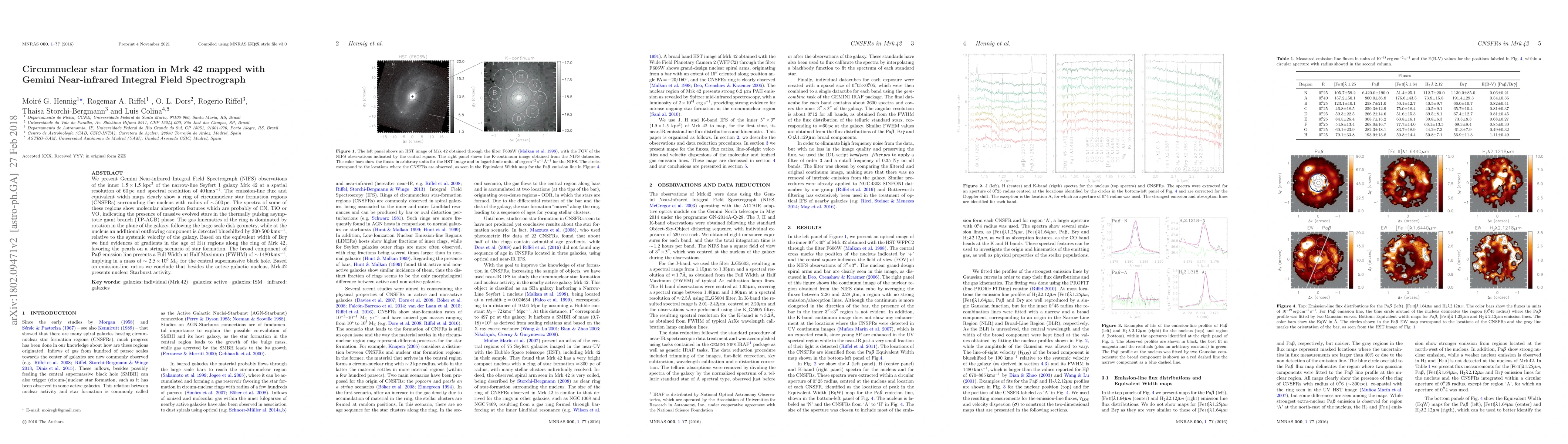 This study uses Gemini NIFS observations to map circumnuclear star formation in Mrk 42, revealing a ring of star formation regions surrounding the nucleus. The analysis shows molecular absorption features indicating massive evolved stars, and gas kinematics dominated by rotational motion, with an additional blueshifted outflowing component.