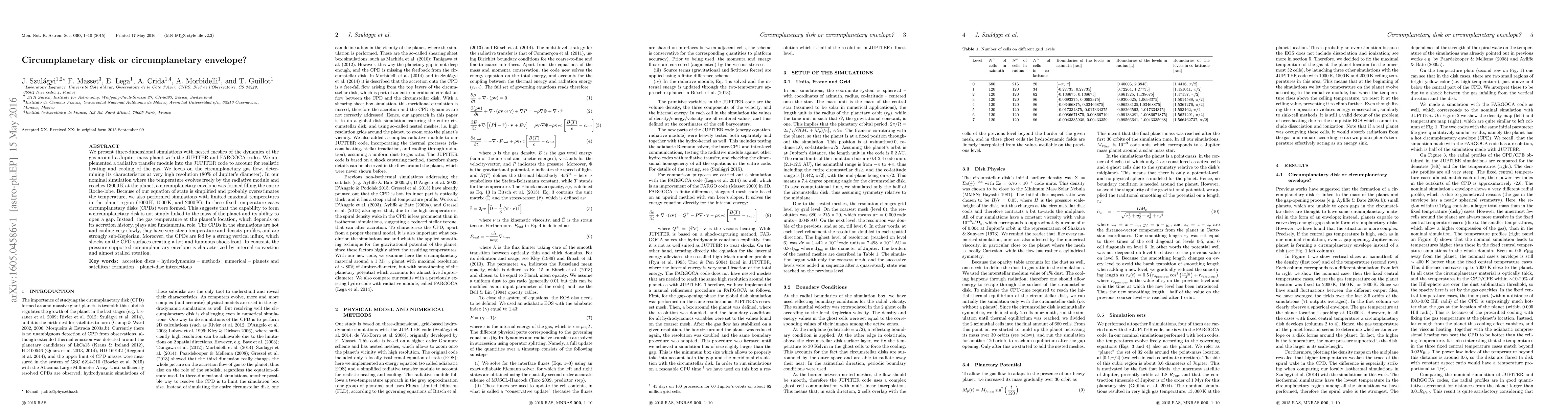 We present three-dimensional simulations with nested meshes of the dynamics of the gas around a Jupiter mass planet with the JUPITER and FARGOCA codes. We implemented a radiative transfer module into the JUPITER code to account for realistic heating and cooling of the gas. We focus on the circumplanetary gas flow, determining its characteristics at very high resolution ($80\%$ of Jupiter's diameter). In our nominal simulation where the temperature evolves freely by the radiative module and reaches 13000 K at the planet, a circumplanetary envelope was formed filling the entire Roche-lobe. Because of our equation of state is simplified and probably overestimates the temperature, we also performed simulations with limited maximal temperatures in the planet region (1000 K, 1500 K, and 2000 K). In these fixed temperature cases circumplanetary disks (CPDs) were formed. This suggests that the capability to form a circumplanetary disk is not simply linked to the mass of the planet and its ability to open a gap. Instead, the gas temperature at the planet's location, which depends on its accretion history, plays also fundamental role. The CPDs in the simulations are hot and cooling very slowly, they have very steep temperature and density profiles, and are strongly sub-Keplerian. Moreover, the CPDs are fed by a strong vertical influx, which shocks on the CPD surfaces creating a hot and luminous shock-front. In contrast, the pressure supported circumplanetary envelope is characterized by internal convection and almost stalled rotation.