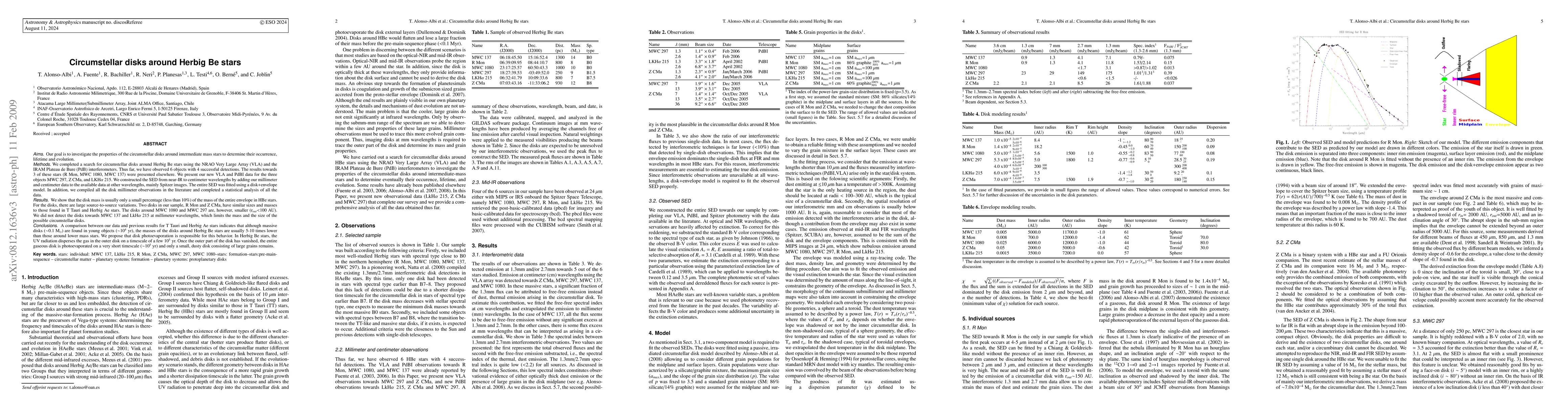 This work distinguishes itself by focusing on the lower disk masses and sizes in Herbig Be stars, attributing these differences to disk photoevaporation driven by intense UV radiation from massive central stars.