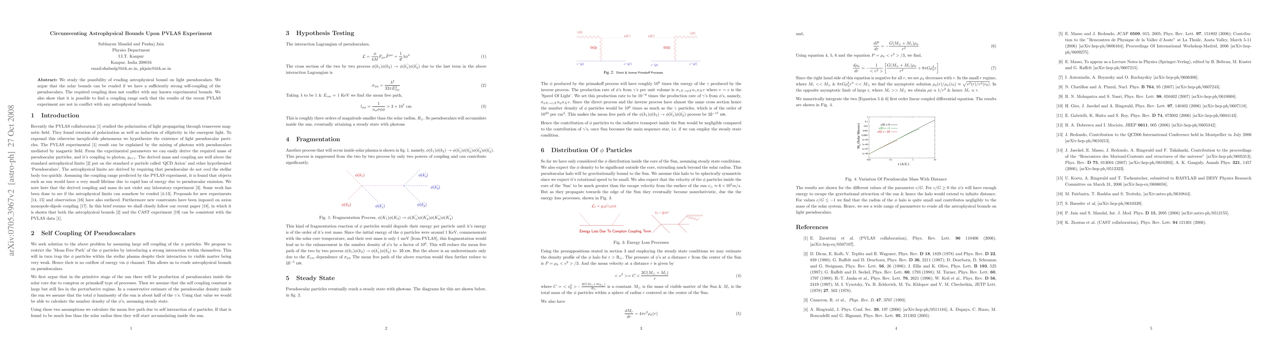 This paper explores how strong self-coupling of light pseudoscalars can circumvent astrophysical bounds, particularly solar bounds, without violating known experimental limits. It demonstrates a coupling range that reconciles the PVLAS experiment results with these astrophysical constraints.