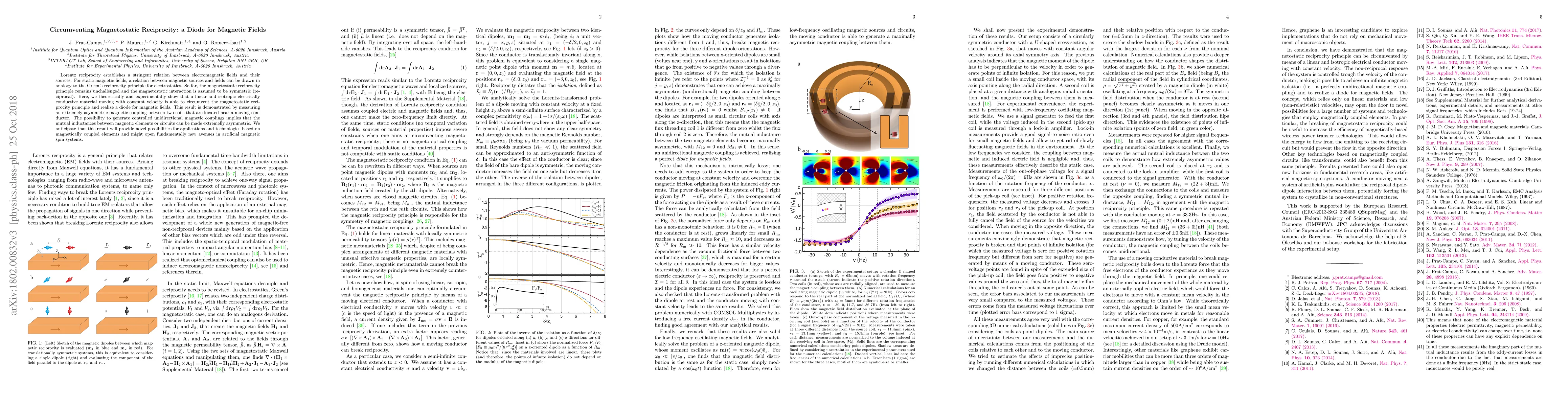 A moving conductive material can circumvent magnetic reciprocity, creating a diode for magnetic fields with controlled unidirectional couplings.