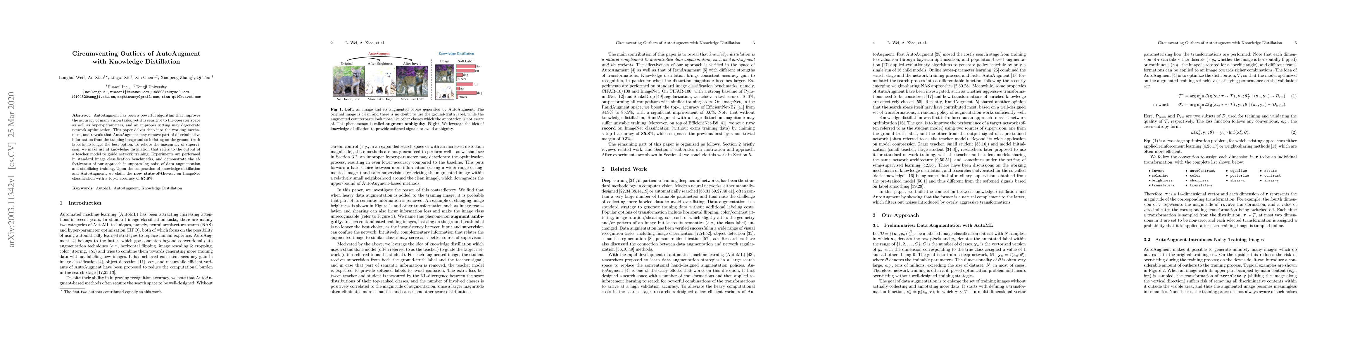AutoAugment has been a powerful algorithm that improves the accuracy of many vision tasks, yet it is sensitive to the operator space as well as hyper-parameters, and an improper setting may degenerate network optimization. This paper delves deep into the working mechanism, and reveals that AutoAugment may remove part of discriminative information from the training image and so insisting on the ground-truth label is no longer the best option. To relieve the inaccuracy of supervision, we make use of knowledge distillation that refers to the output of a teacher model to guide network training. Experiments are performed in standard image classification benchmarks, and demonstrate the effectiveness of our approach in suppressing noise of data augmentation and stabilizing training. Upon the cooperation of knowledge distillation and AutoAugment, we claim the new state-of-the-art on ImageNet classification with a top-1 accuracy of 85.8%.