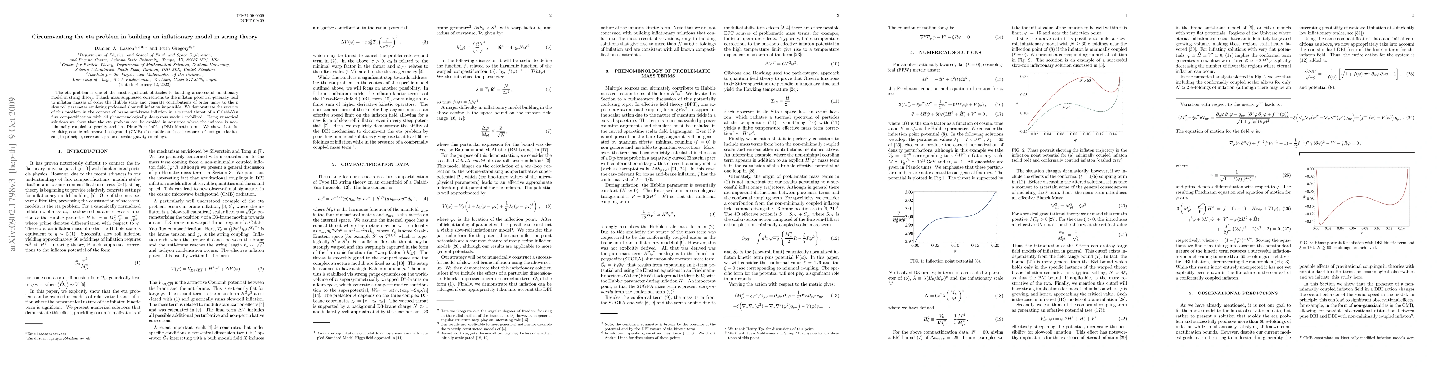 This paper addresses the eta problem in string theory's inflationary models, showing that it can be circumvented by non-minimally coupling the inflaton to gravity and incorporating a Dirac-Born-Infeld kinetic term. The study uses exact numerical solutions to demonstrate that this approach allows for viable slow-roll inflation and suggests CMB observables as potential probes of scalar-gravity interactions.