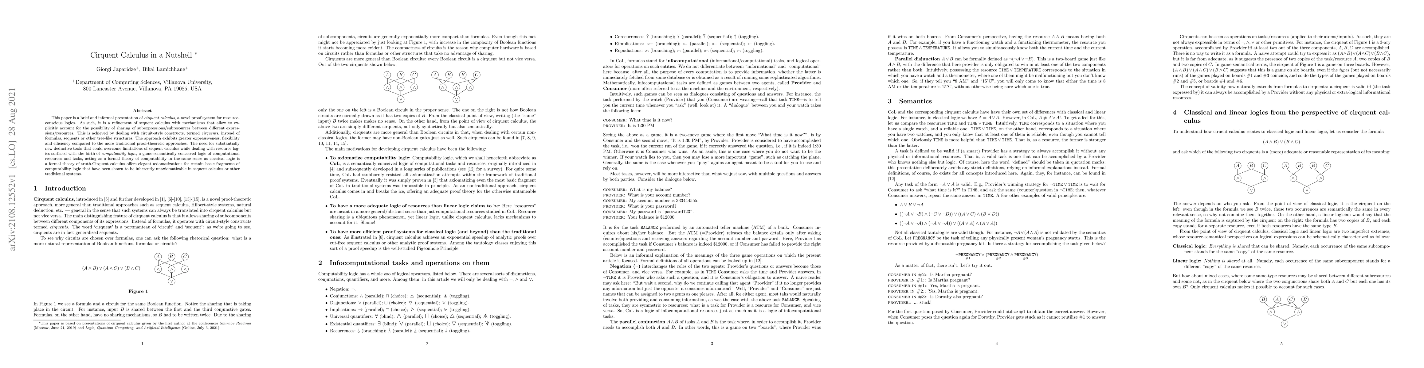 This paper is a brief and informal presentation of cirquent calculus, a novel proof system for resource-conscious logics. As such, it is a refinement of sequent calculus with mechanisms that allow to explicitly account for the possibility of sharing of subexpressions/subresources between different expressions/resources. This is achieved by dealing with circuit-style constructs, termed cirquents, instead of formulas, sequents or other tree-like structures. The approach exhibits greater expressiveness, flexibility and efficiency compared to the more traditional proof-theoretic approaches.