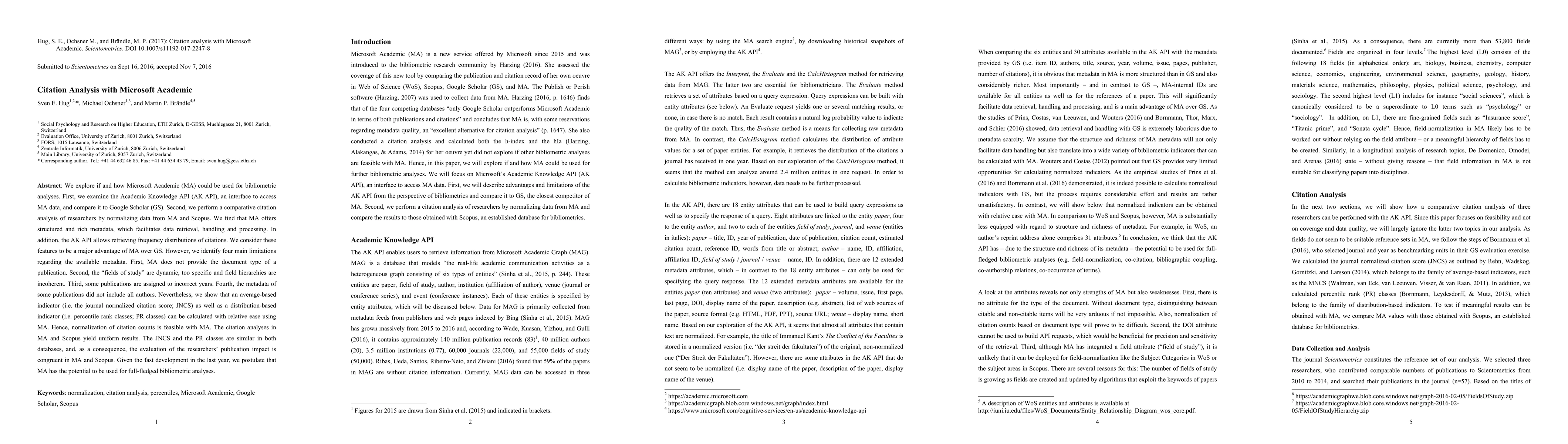 The research examines Microsoft Academic (MA) using its Academic Knowledge API (AK API) and compares it to Google Scholar (GS). A comparative citation analysis of three researchers is performed by normalizing data from MA and comparing it with Scopus.