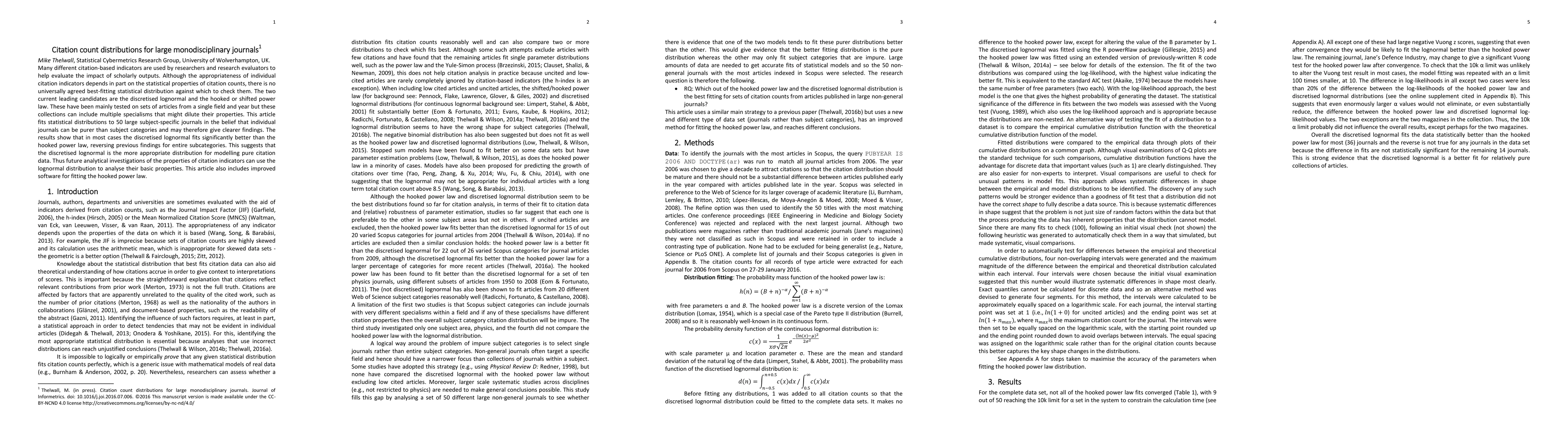 This paper examines the statistical distribution of citation counts for 50 large monodisciplinary journals, finding that the discretised lognormal distribution fits significantly better than the hooked power law, suggesting it is more appropriate for modeling citation data. The study also provides improved software for fitting the hooked power law.