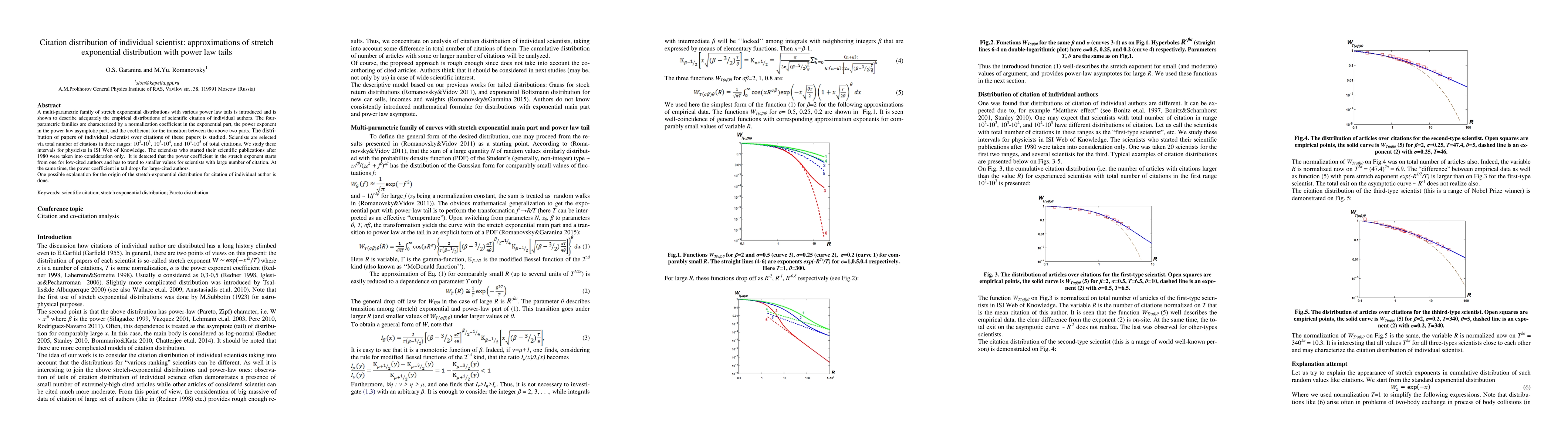 This paper introduces a multi-parametric stretch exponential distribution with power law tails to model the empirical citation distributions of individual scientists. The study finds that the power coefficient in the distribution varies with the total number of citations, suggesting a complex relationship between citation frequency and scientific impact.