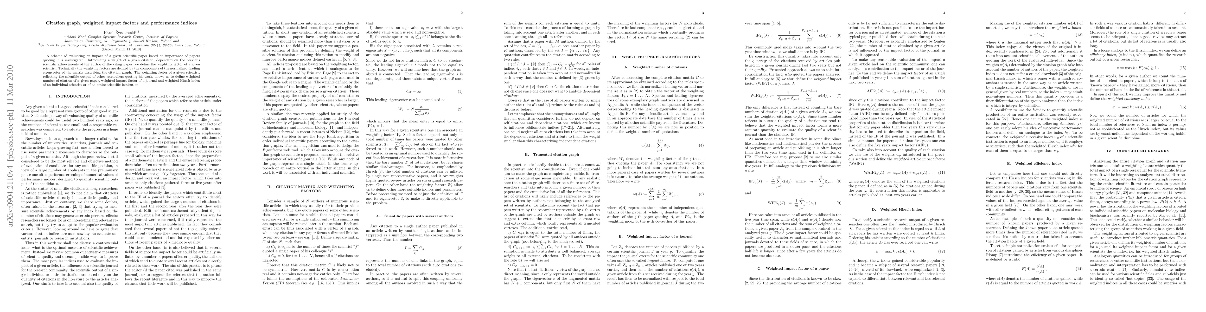 This paper proposes a method to evaluate the impact of scientific papers by considering the importance of citing papers, weighted by the author's previous achievements. It introduces weighted citation metrics, including the weighted impact factor for journals and the Hirsch index for scientists, derived from the normalized leading eigenvector of a citation graph matrix.