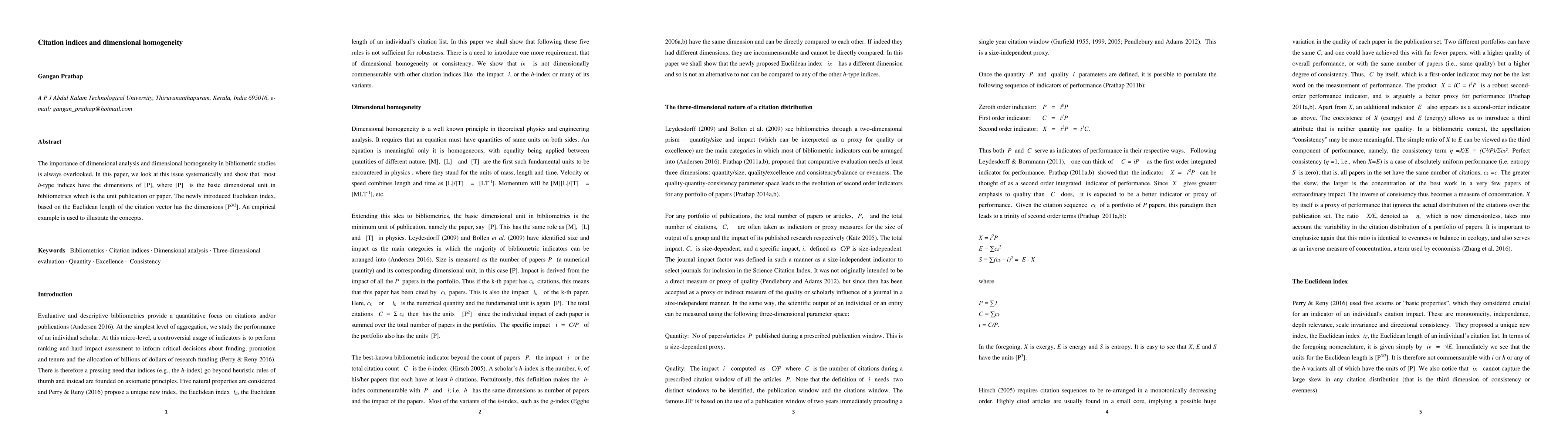 The importance of dimensional analysis and dimensional homogeneity in bibliometric studies is always overlooked. In this paper, we look at this issue systematically and show that most h-type indices have the dimensions of [P], where [P] is the basic dimensional unit in bibliometrics which is the unit publication or paper. The newly introduced Euclidean index, based on the Euclidean length of the citation vector has the dimensions [P3/2]. An empirical example is used to illustrate the concepts.