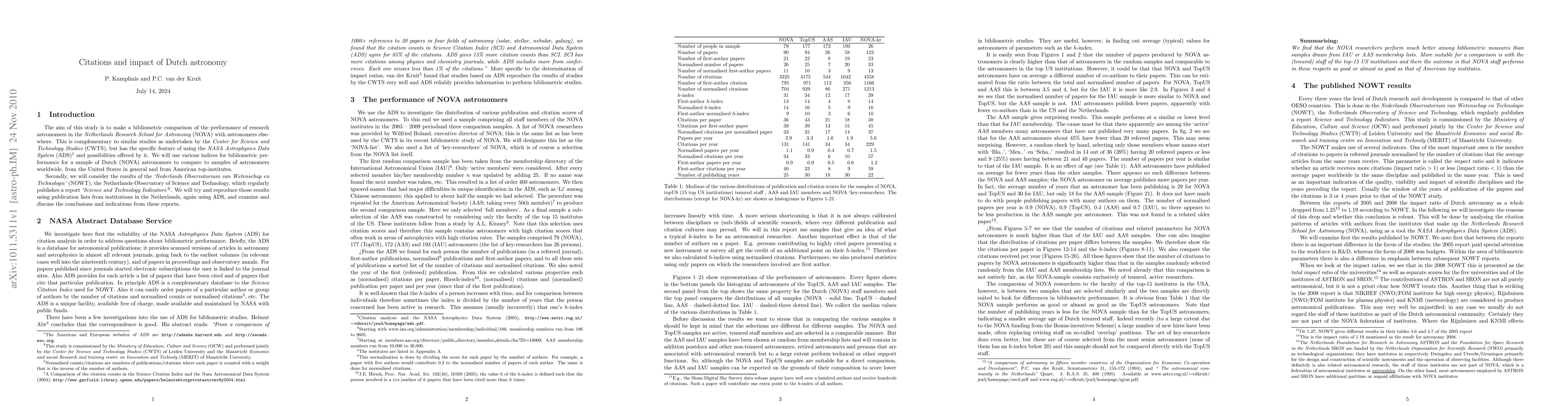 Dutch astronomers outperform international peers in bibliometric measures, with citation impact ratio rising, contrary to reports suggesting a decline.