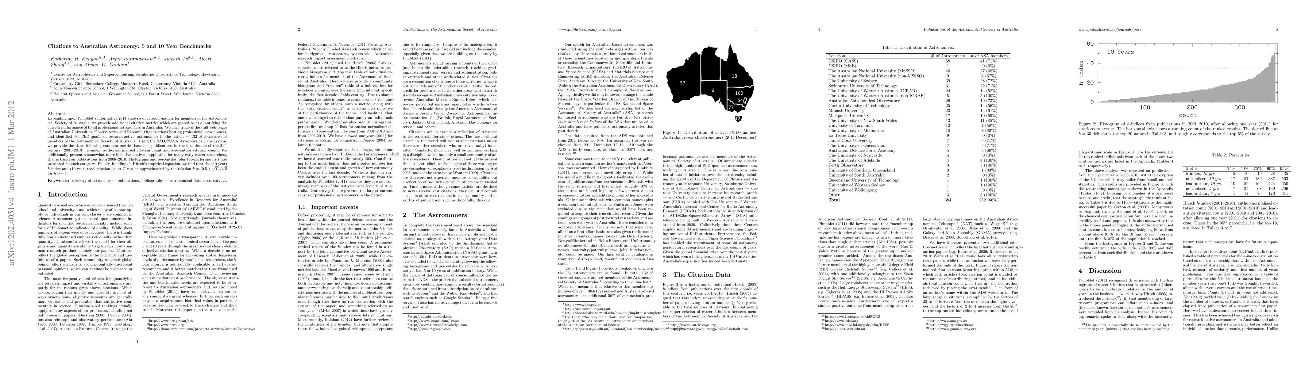 Expanding upon Pimbblet's informative 2011 analysis of career h-indices for members of the Astronomical Society of Australia, we provide additional citation metrics which are geared to a) quantifying the current performance of b) all professional astronomers in Australia. We have trawled the staff web-pages of Australian Universities, Observatories and Research Organisations hosting professional astronomers, and identified 383 PhD-qualified, research-active, astronomers in the nation - 131 of these are not members of the Astronomical Society of Australia. Using the SAO/NASA Astrophysics Data System, we provide the three following common metrics based on publications in the first decade of the 21st century (2001-2010): h-index, author-normalised citation count and lead-author citation count. We additionally present a somewhat more inclusive analysis, applicable for many early-career researchers, that is based on publications from 2006-2010. Histograms and percentiles, plus top-performer lists, are presented for each category. Finally, building on Hirsch's empirical equation, we find that the (10-year) h-index and (10-year) total citation count T can be approximated by the relation h = (0.5+sqrt{T})/sqrt{5} for h > 5.