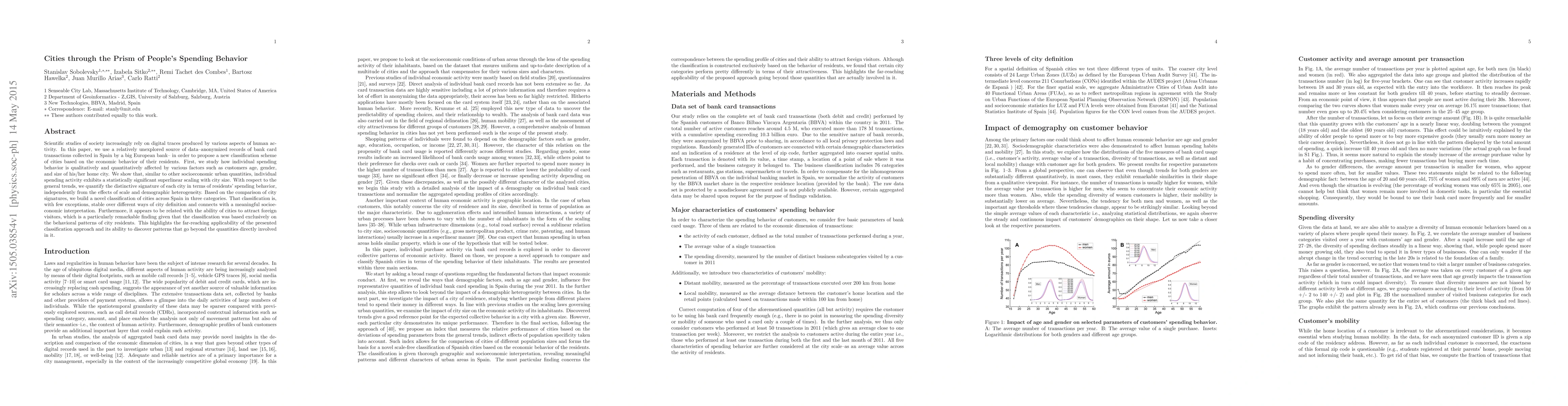 Scientific studies of society increasingly rely on digital traces produced by various aspects of human activity. In this paper, we use a relatively unexplored source of data, anonymized records of bank card transactions collected in Spain by a big European bank, in order to propose a new classification scheme of cities based on the economic behavior of their residents. First, we study how individual spending behavior is qualitatively and quantitatively affected by various factors such as customer's age, gender, and size of a home city. We show that, similar to other socioeconomic urban quantities, individual spending activity exhibits a statistically significant superlinear scaling with city size. With respect to the general trends, we quantify the distinctive signature of each city in terms of residents' spending behavior, independently from the effects of scale and demographic heterogeneity. Based on the comparison of city signatures, we build a novel classification of cities across Spain in three categories. That classification is, with few exceptions, stable over different ways of city definition and connects with a meaningful socioeconomic interpretation. Furthermore, it appears to be related with the ability of cities to attract foreign visitors, which is a particularly remarkable finding given that the classification was based exclusively on the behavioral patterns of city residents. This highlights the far-reaching applicability of the presented classification approach and its ability to discover patterns that go beyond the quantities directly involved in it.