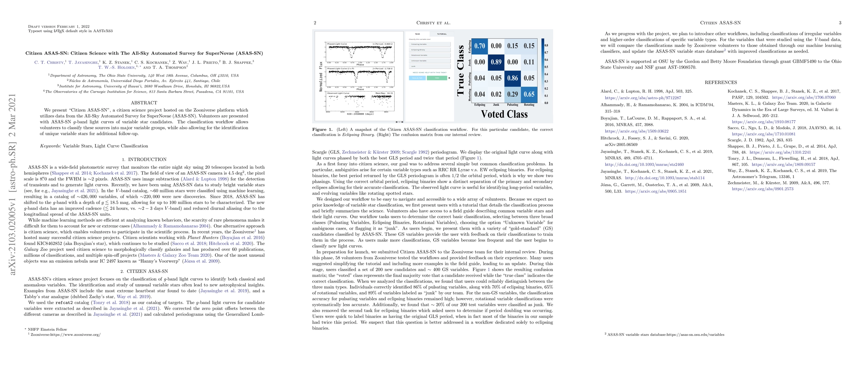 "Citizen ASAS-SN" leverages Zooniverse for citizen science, enabling volunteers to classify $g$-band light curves of variable star candidates from ASAS-SN, aiding in the identification of major variable groups and unique stars for further study.