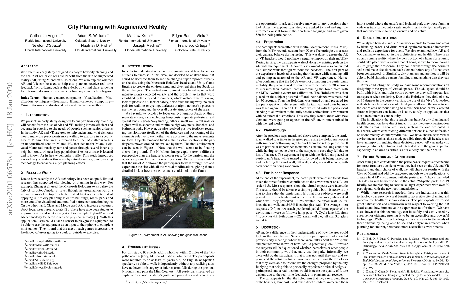 We present an early study designed to analyze how city planning and the health of senior citizens can benefit from the use of augmented reality (AR) using Microsoft's HoloLens. We also explore whether AR and VR can be used to help city planners receive real-time feedback from citizens, such as the elderly, on virtual plans, allowing for informed decisions to be made before any construction begins.