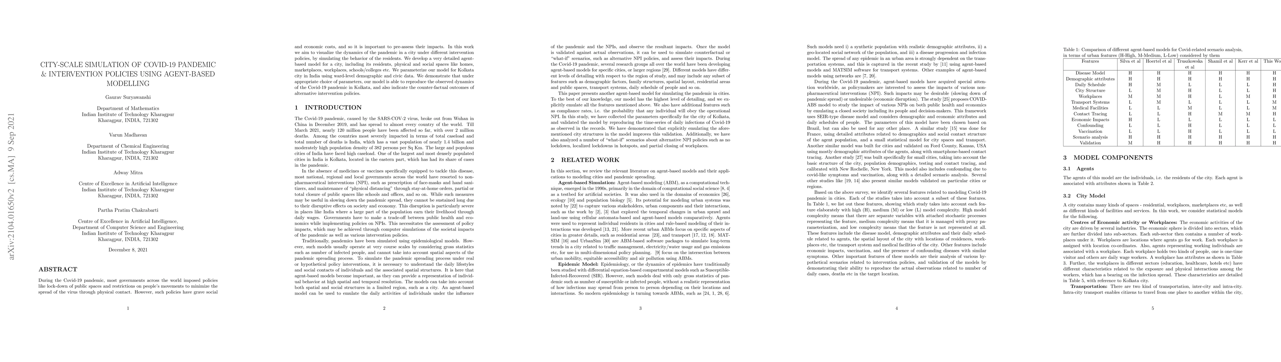 This research paper uses agent-based modeling to simulate the Covid-19 pandemic in a city, including various intervention policies, and demonstrates its ability to reproduce observed dynamics and predict counter-factual outcomes.
