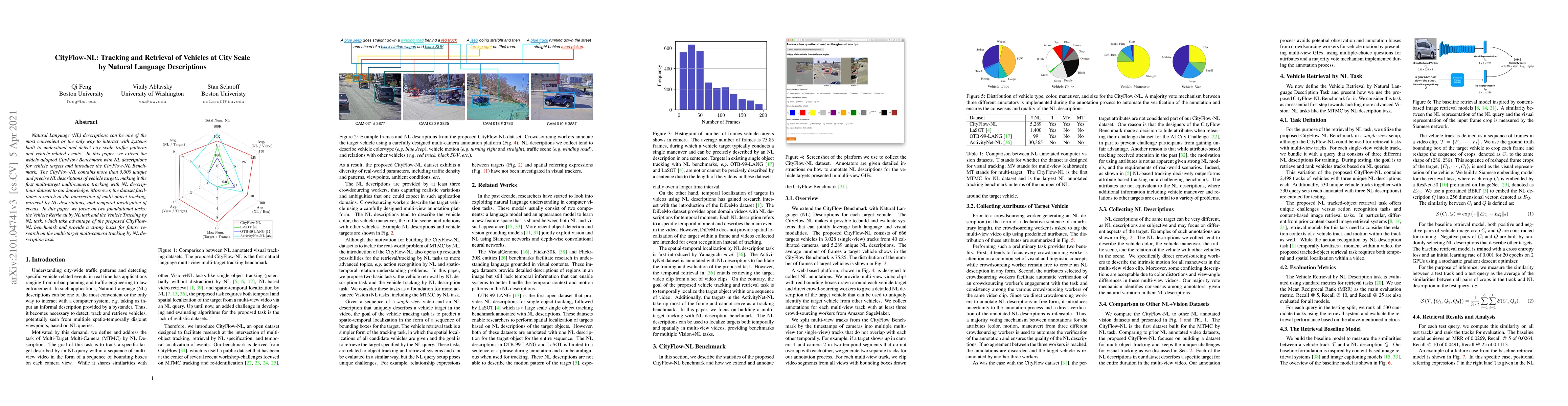 This paper introduces CityFlow-NL, an extended CityFlow Benchmark enriched with over 5,000 natural language descriptions for vehicle targets, facilitating research on multi-object tracking and retrieval by NL descriptions. The focus is on foundational tasks: Vehicle Retrieval and Tracking by NL, providing a robust basis for future multi-target multi-camera tracking research.