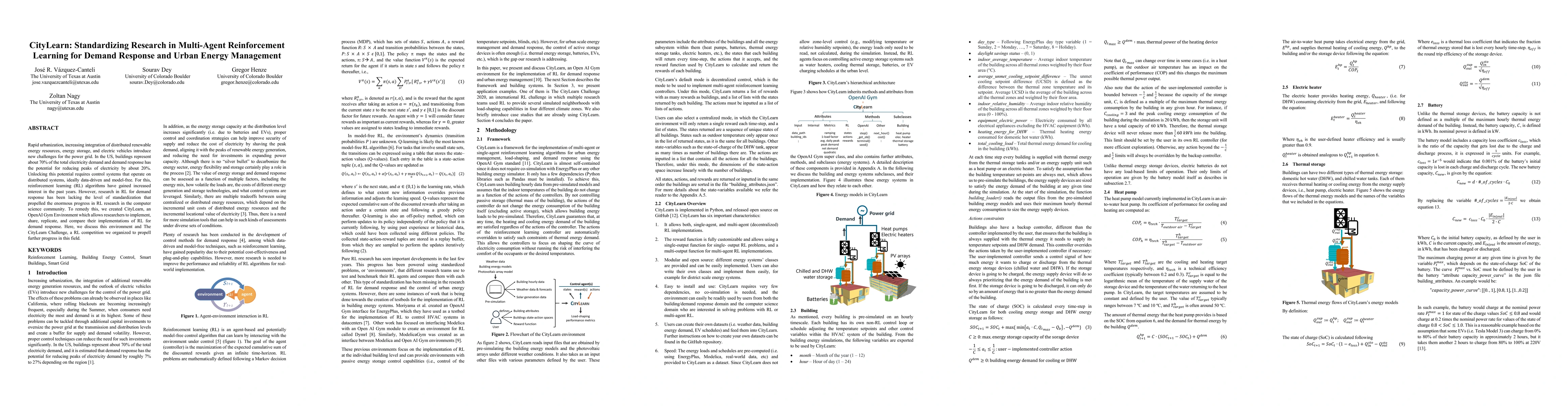 CityLearn provides a standardized environment for multi-agent reinforcement learning research in demand response and urban energy management, aiming to facilitate comparison and replication of RL algorithms. The CityLearn Challenge further promotes progress in this field by offering a competitive platform for researchers.
