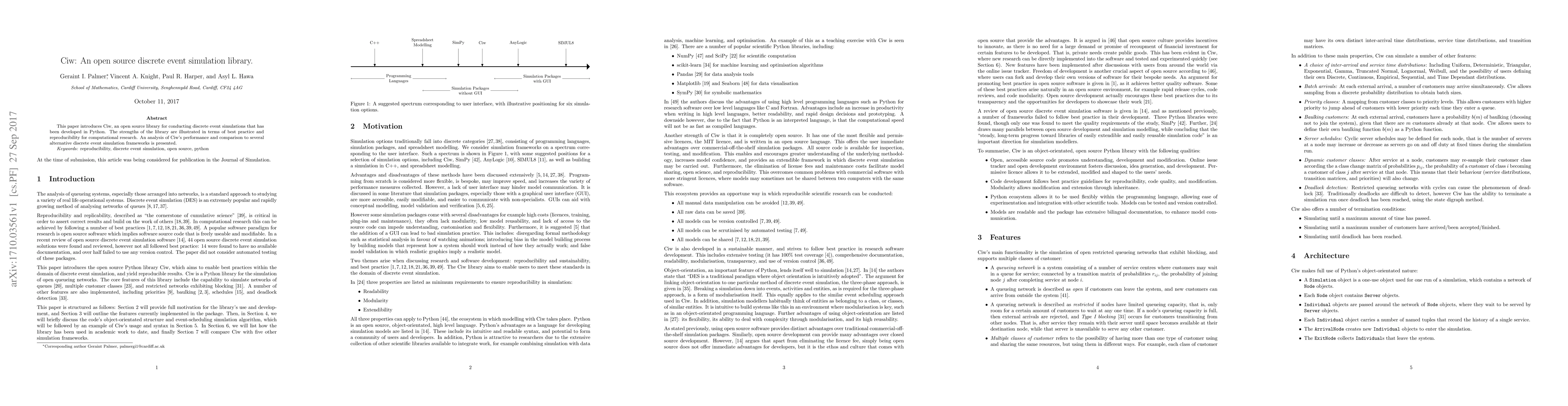 This paper introduces Ciw, an open-source Python library for discrete event simulations, emphasizing best practices and reproducibility. It also compares Ciw's performance against other simulation frameworks.
