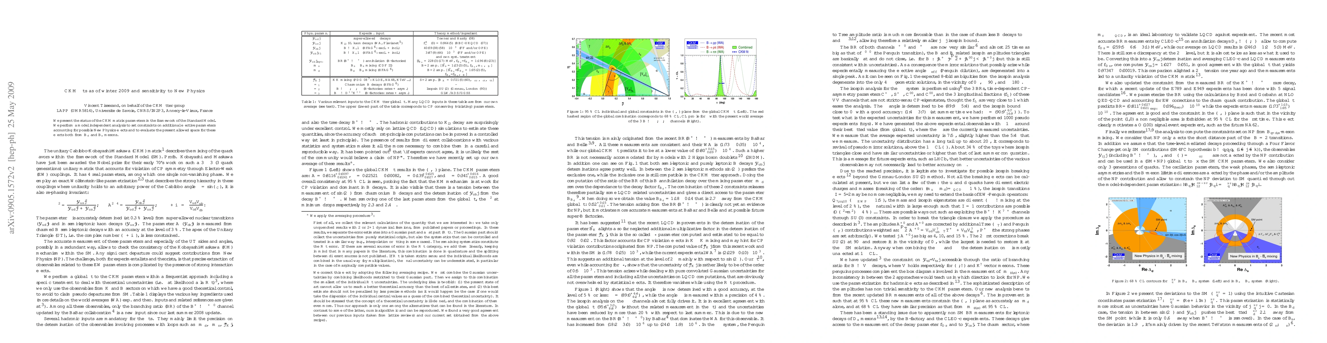 We present the status of the CKM matrix parameters in the framework of the Standard Model. We perform a model independent analysis to set constraints on additional effective parameters accounting for possible New Physics effects and to evaluate the present allowed space for these effects both from $B_d$ and $B_s$ mesons.