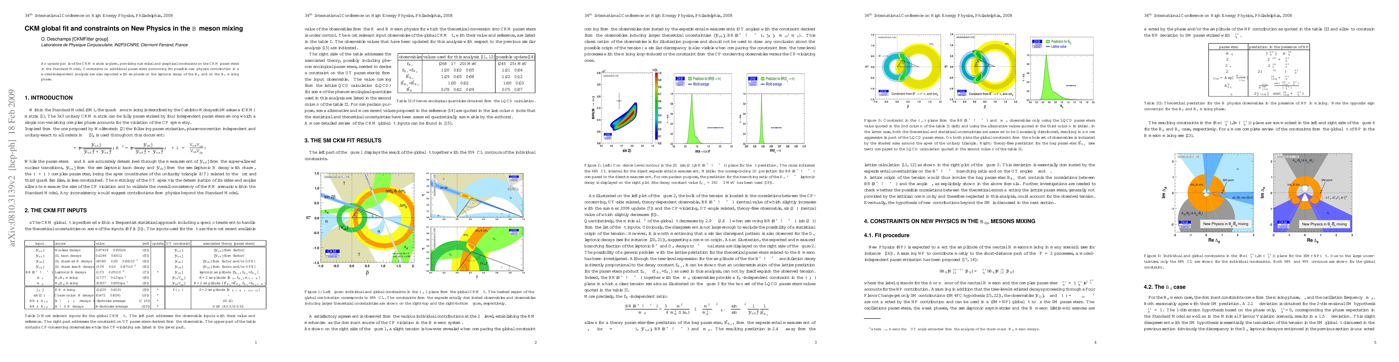 An update profile of the CKM matrix is given, providing numerical and graphical constraints on the CKM parameters in the Standard Model. Constraints on additional parameters accounting for possible new physics contribution in a model-independent analysis are also reported with emphasis on the leptonic decay of the Bd and on the Bs mixing phase.