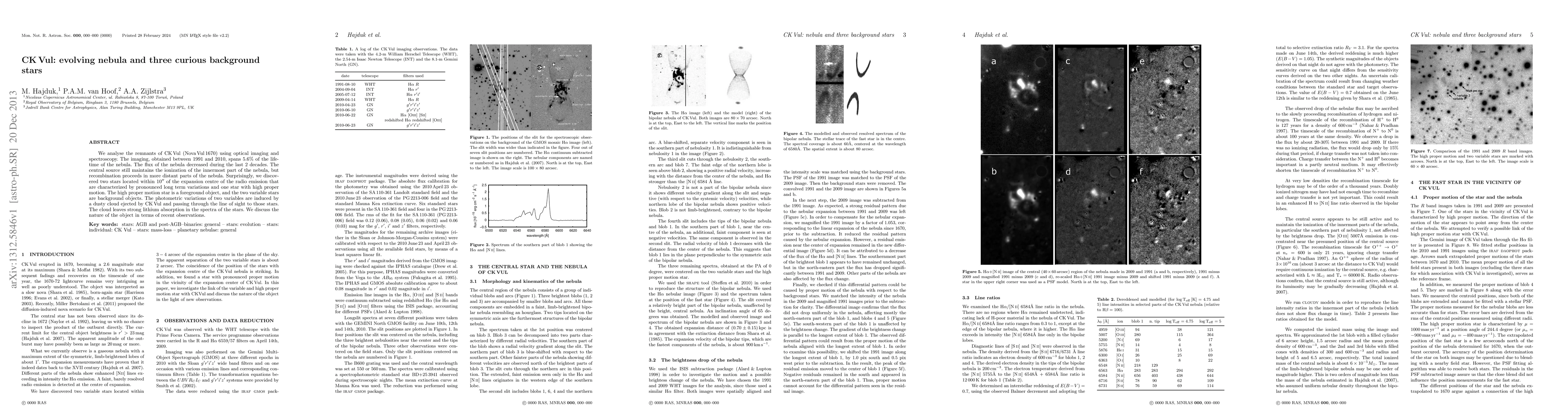 This paper analyzes the remnants of CK Vul (Nova Vul 1670) and finds a decreasing nebula flux over two decades, with ionization maintained in the inner parts. It also identifies three curious background stars, two with long-term variations and one with high proper motion, influenced by a dusty cloud ejected by CK Vul.