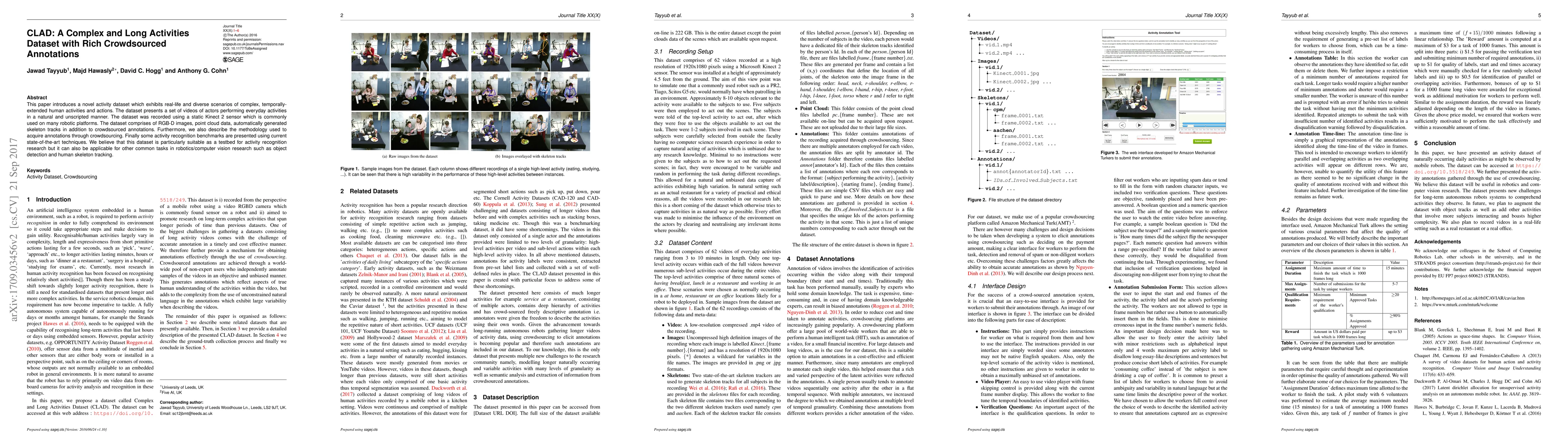 This paper introduces CLAD, a comprehensive dataset featuring diverse real-life complex activities recorded in unscripted scenarios using a Kinect 2 sensor, enriched with crowdsourced annotations and benchmarks for activity recognition, suitable for various robotics and computer vision tasks.