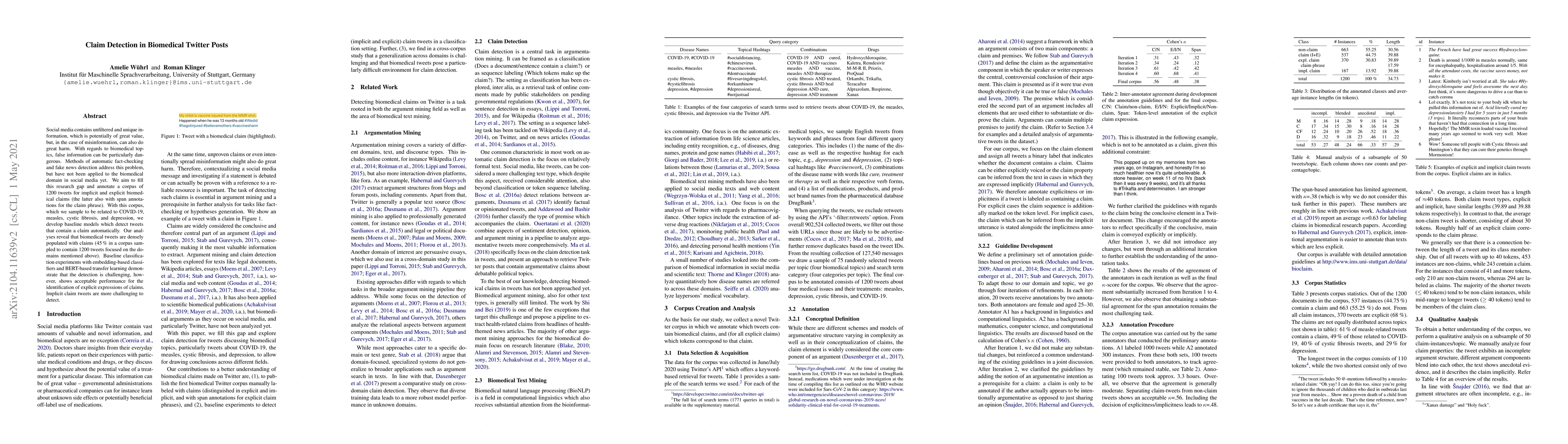 This research develops a dataset of 1200 biomedical Twitter posts annotated for explicit and implicit claims, aiming to detect misinformation in the biomedical domain. Initial model results show that 45% of tweets contain claims, with better performance in detecting explicit claims than implicit ones.