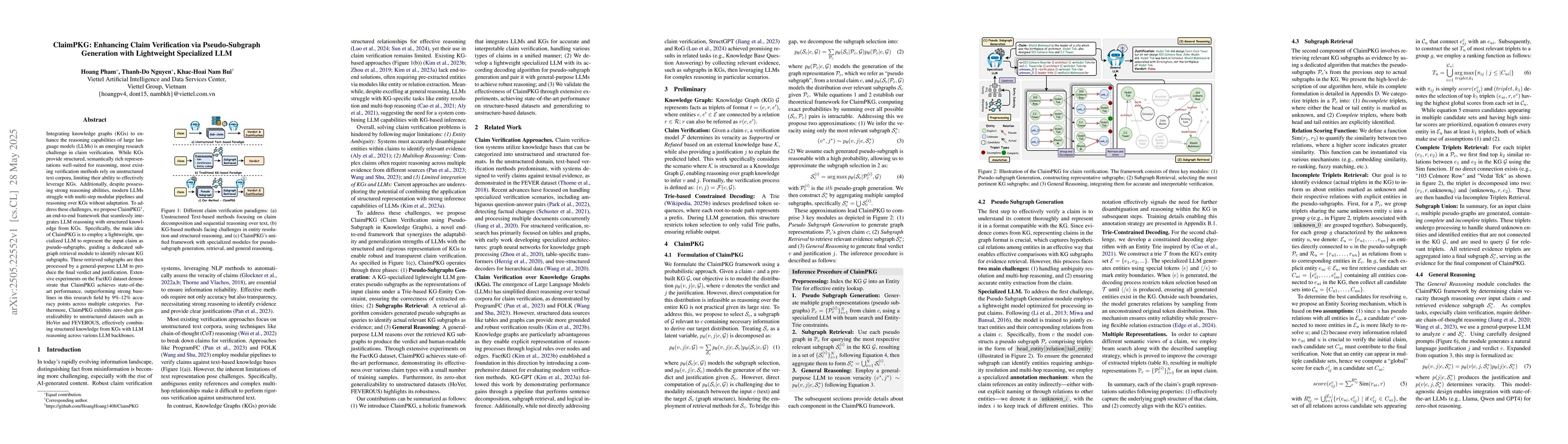 ClaimPKG introduces a novel approach to claim verification by employing a lightweight specialized LLM for pseudo-subgraph generation, enabling efficient and accurate integration of KGs with general-purpose LLMs.