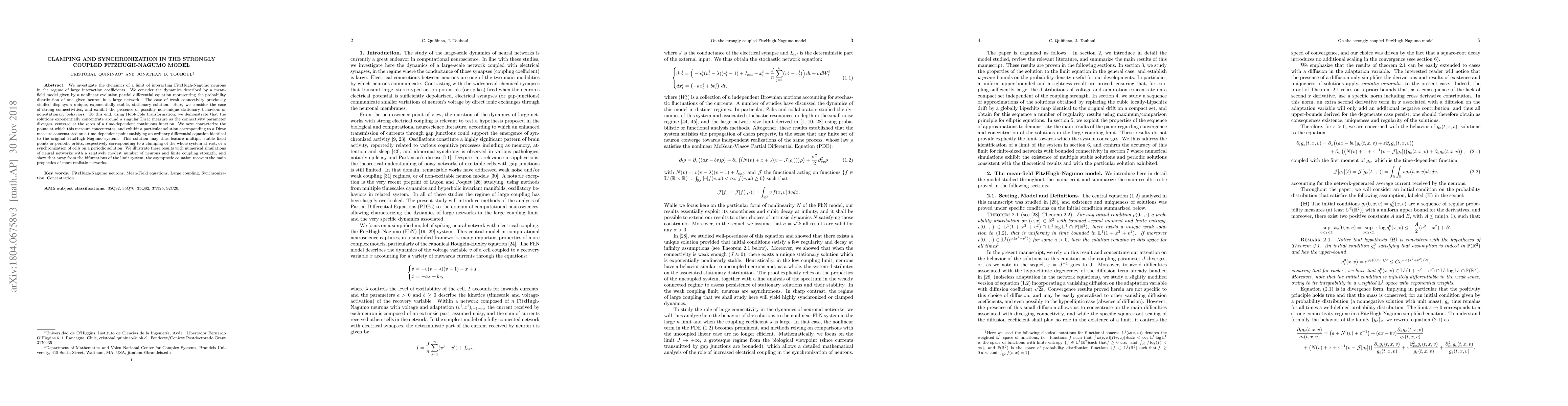 This paper explores the dynamics of strongly coupled FitzHugh-Nagumo neurons through a mean-field model, revealing non-unique or non-stationary behaviors under high connectivity. It demonstrates concentration of solutions around a singular Dirac measure, showing potential for multiple stable states or synchronized periodic orbits.