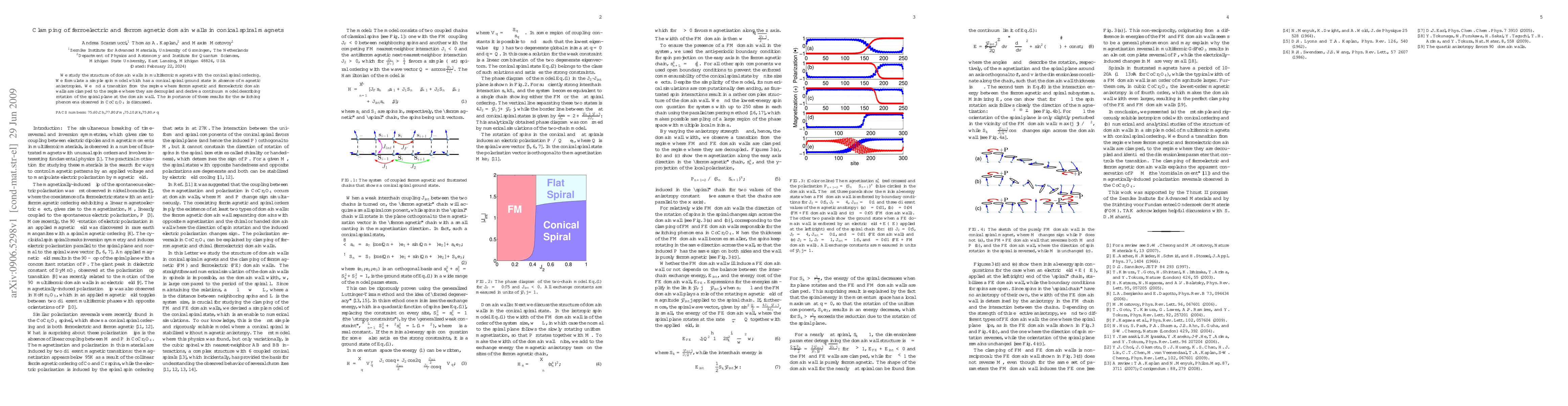 This paper investigates domain walls in conical spiral magnets, revealing a transition from clamped to decoupled ferroelectric and ferromagnetic domain walls, and develops a continuum model to describe spiral plane rotation at domain walls, with implications for switching phenomena in CoCr2O4.