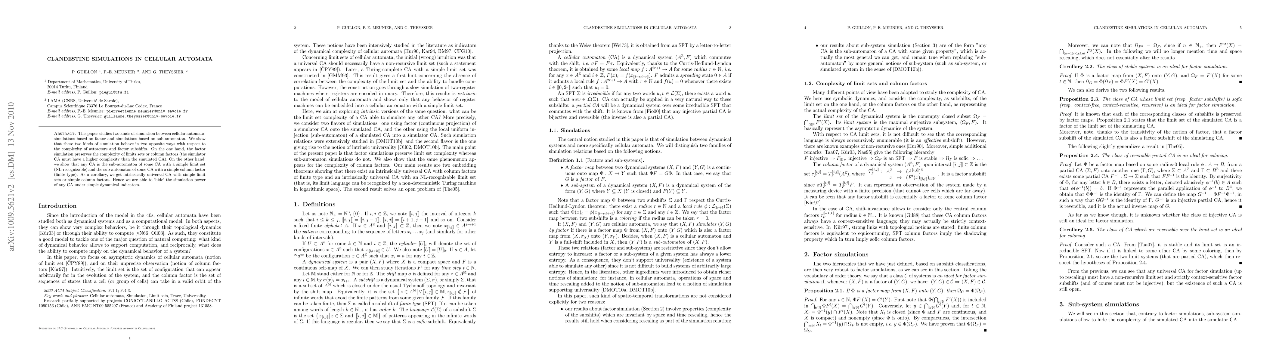 This paper studies two kinds of simulation between cellular automata: simulations based on factor and simulations based on sub-automaton. We show that these two kinds of simulation behave in two opposite ways with respect to the complexity of attractors and factor subshifts. On the one hand, the factor simulation preserves the complexity of limits sets or column factors (the simulator CA must have a higher complexity than the simulated CA). On the other hand, we show that any CA is the sub-automaton of some CA with a simple limit set (NL-recognizable) and the sub-automaton of some CA with a simple column factor (finite type). As a corollary, we get intrinsically universal CA with simple limit sets or simple column factors. Hence we are able to 'hide' the simulation power of any CA under simple dynamical indicators.
