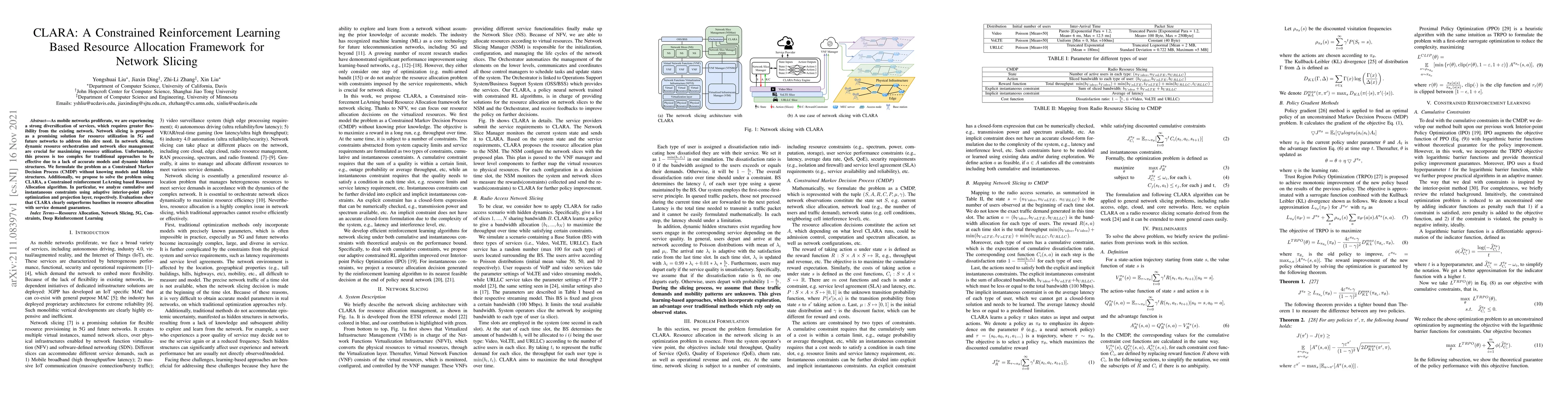 This paper introduces CLARA, a Constrained Reinforcement Learning based Resource Allocation framework for network slicing in 5G networks. CLARA addresses the complexity of dynamic resource orchestration using adaptive techniques to manage cumulative and instantaneous constraints, outperforming traditional methods in resource allocation efficiency.