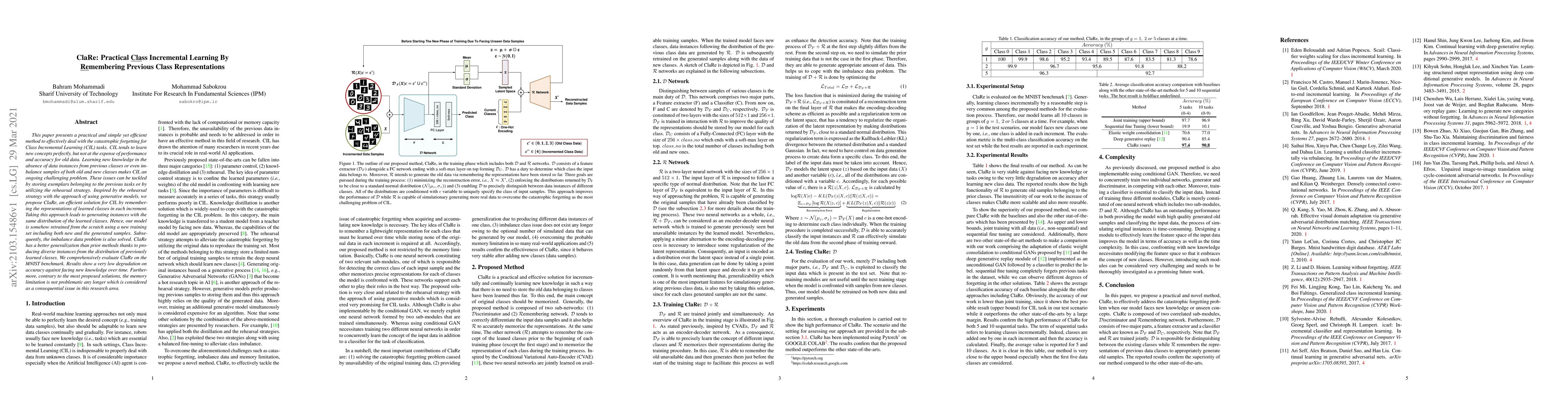 This paper introduces ClaRe, a method for Class Incremental Learning that mitigates catastrophic forgetting by generating instances from previous class distributions, thus maintaining performance on old data while learning new concepts. ClaRe effectively addresses memory limitations and achieves low accuracy degradation on benchmarks like MNIST.