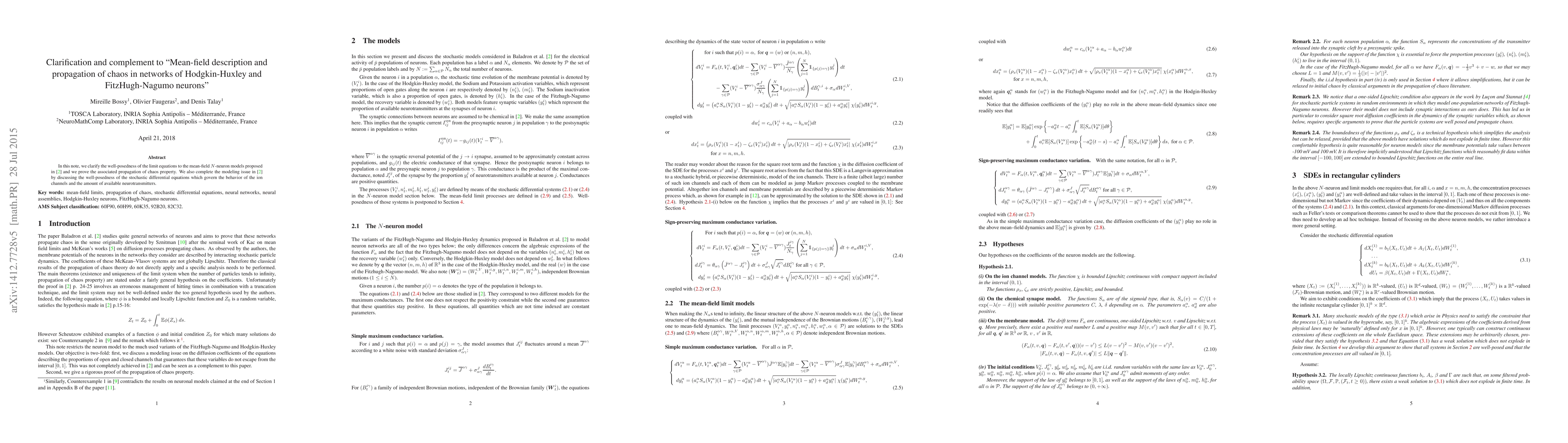 In this note, we clarify the well-posedness of the limit equations to the mean-field $N$-neuron models proposed in Baladron et al. and we prove the associated propagation of chaos property. We also complete the modeling issue in Baladron et al. by discussing the well-posedness of the stochastic differential equations which govern the behavior of the ion channels and the amount of available neurotransmitters.