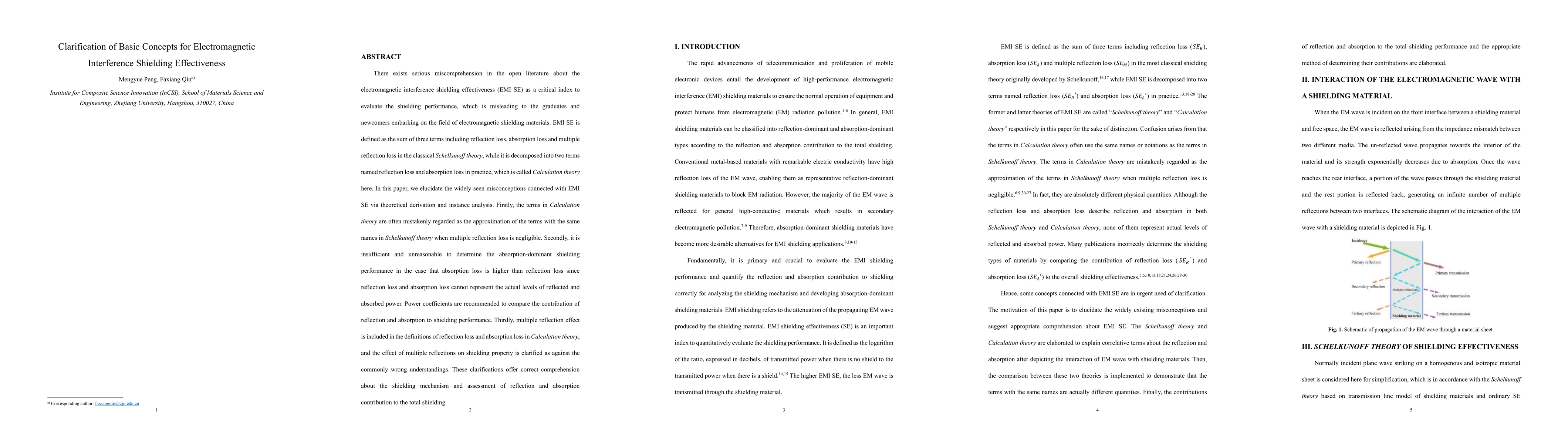 This paper clarifies misconceptions about electromagnetic interference shielding effectiveness (EMI SE), emphasizing the distinction between classical Schelkunoff theory and practical Calculation theory. It corrects the misinterpretation of reflection and absorption losses, advocating for the use of power coefficients to accurately assess shielding performance.