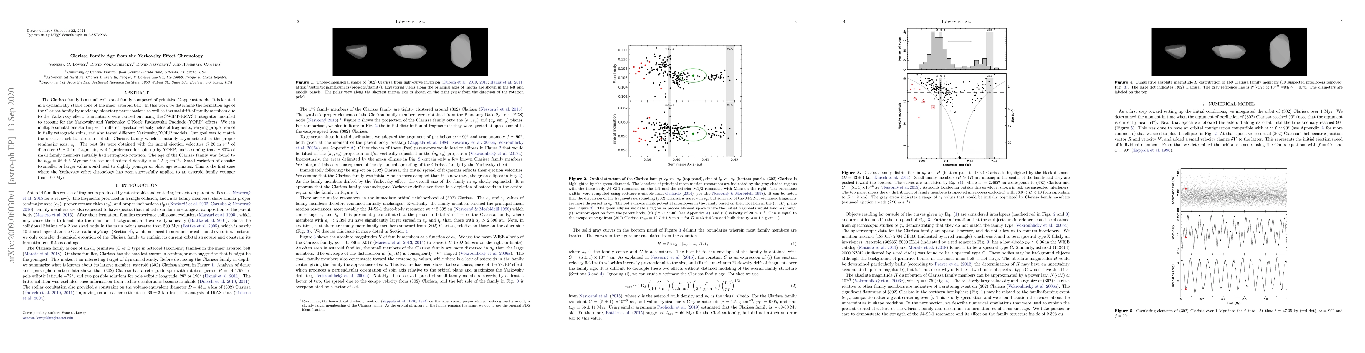 This study determines the formation age of the Clarissa asteroid family using simulations that incorporate the Yarkovsky and YORP effects, finding an age of 56±6 Myr, marking the first successful application of the Yarkovsky effect chronology to a family younger than 100 Myr. The best fit simulations assume initial ejection velocities < 20 m/s and a high initial retrograde spin prevalence.