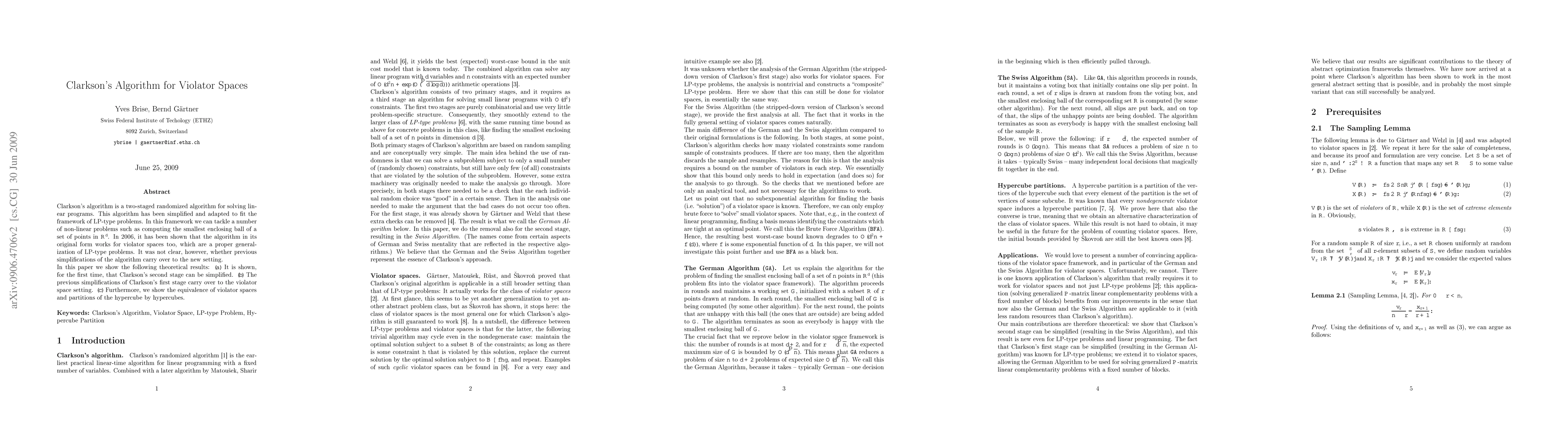 This paper simplifies Clarkson's algorithm for solving linear programs, showing that its second stage can be streamlined and that previous adaptations of the first stage remain valid in the context of violator spaces. It also establishes an equivalence between violator spaces and partitions of the hypercube by hypercubes.